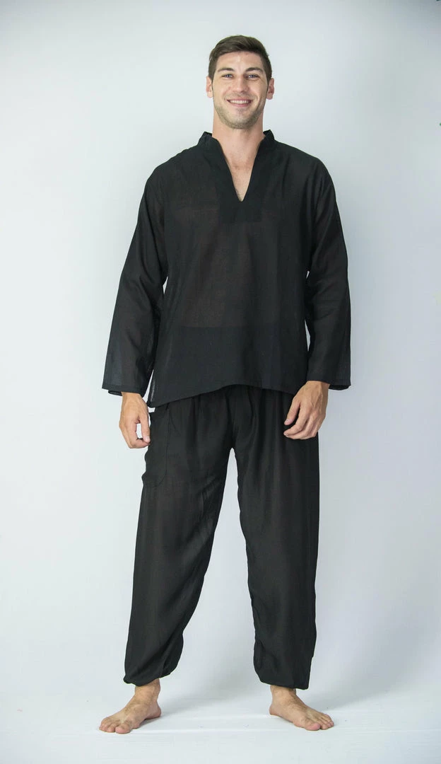 HaremPants.com Men’s Mens Yoga Shirts Nehru Collared In Black