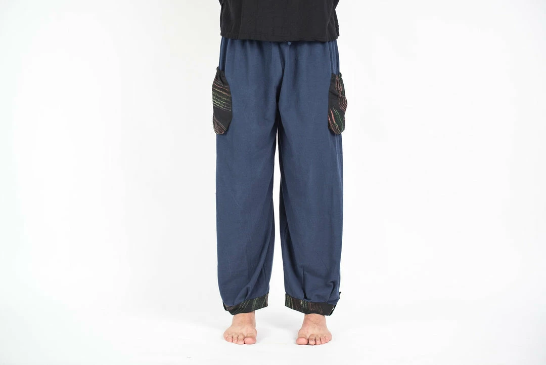 Thai Cotton Drawstring Pants With Hill Tribe Trim Ankles and Pockets.