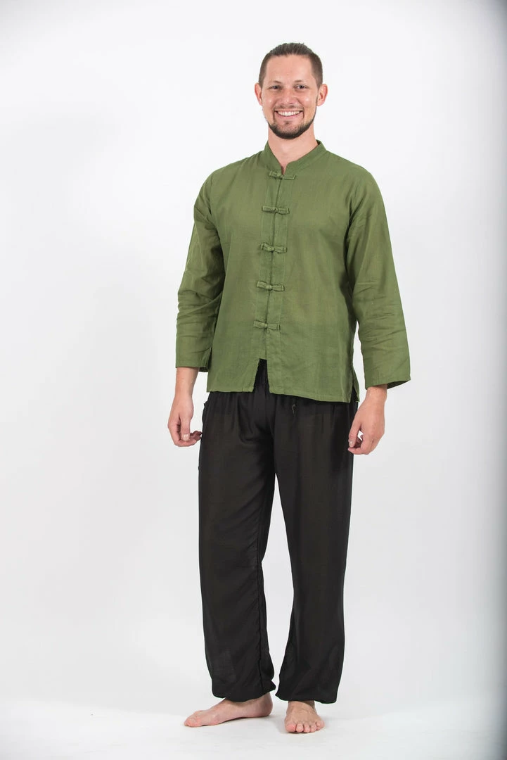 HaremPants.com Mens Yoga Shirts Chinese Collared In Olive Men’s