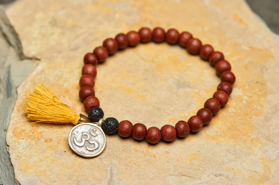 HaremPants.com Ohm Silver Charm With Nepalese Budhi Wooden Beads Bracelet