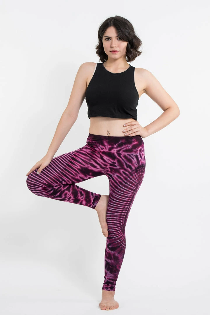 Unique electric designs tie dye leggings made from soft cotton material.
