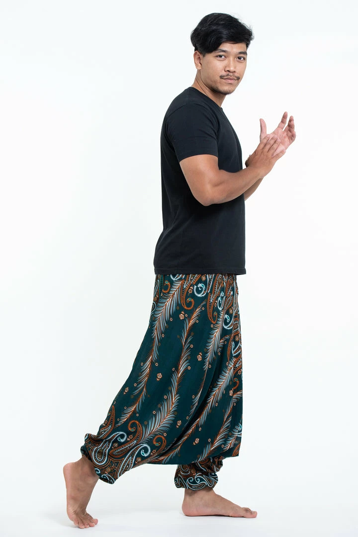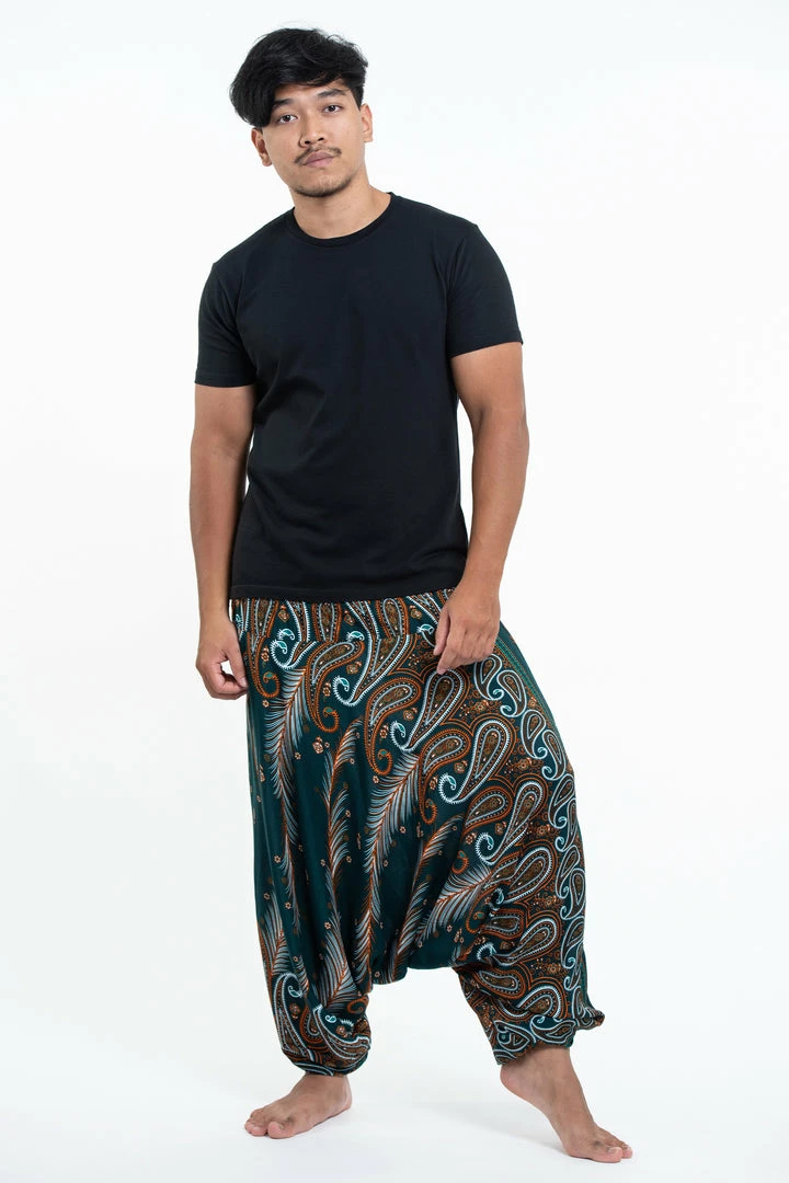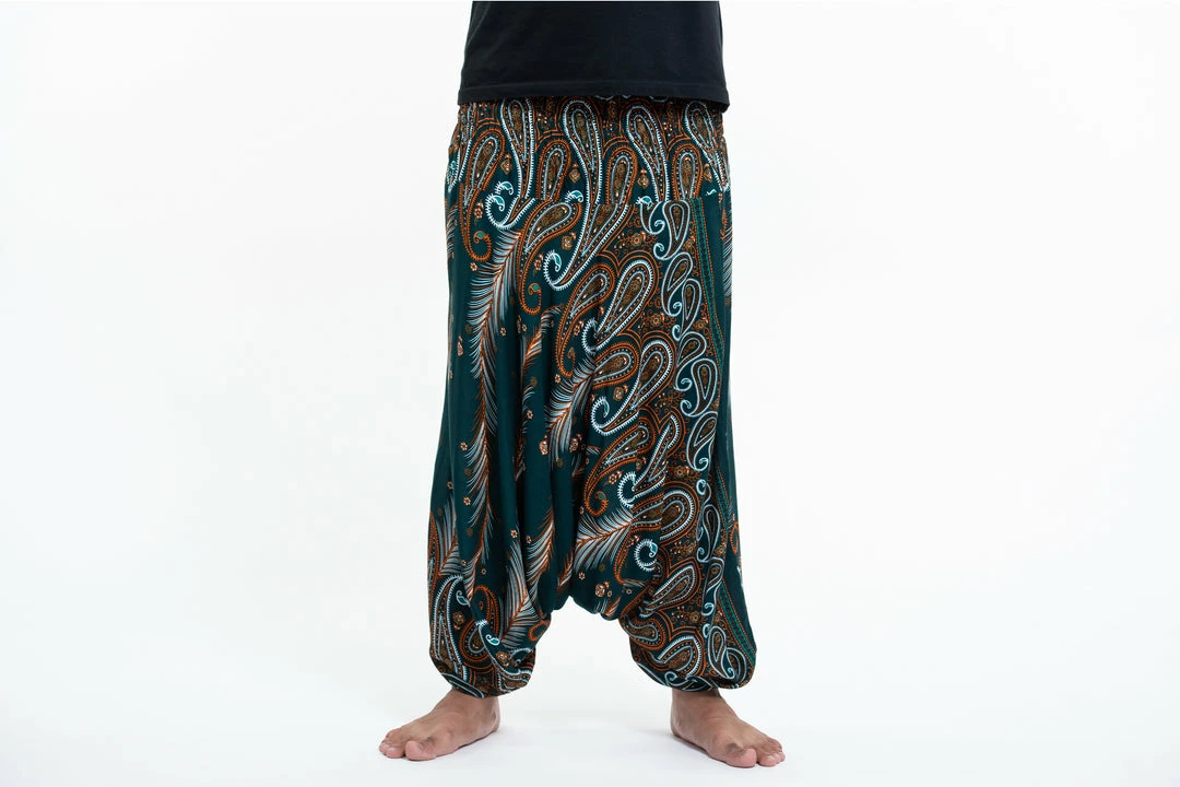 HaremPants.com Paisley Feathers Drop Crotch Men’s Harem Pants In Green