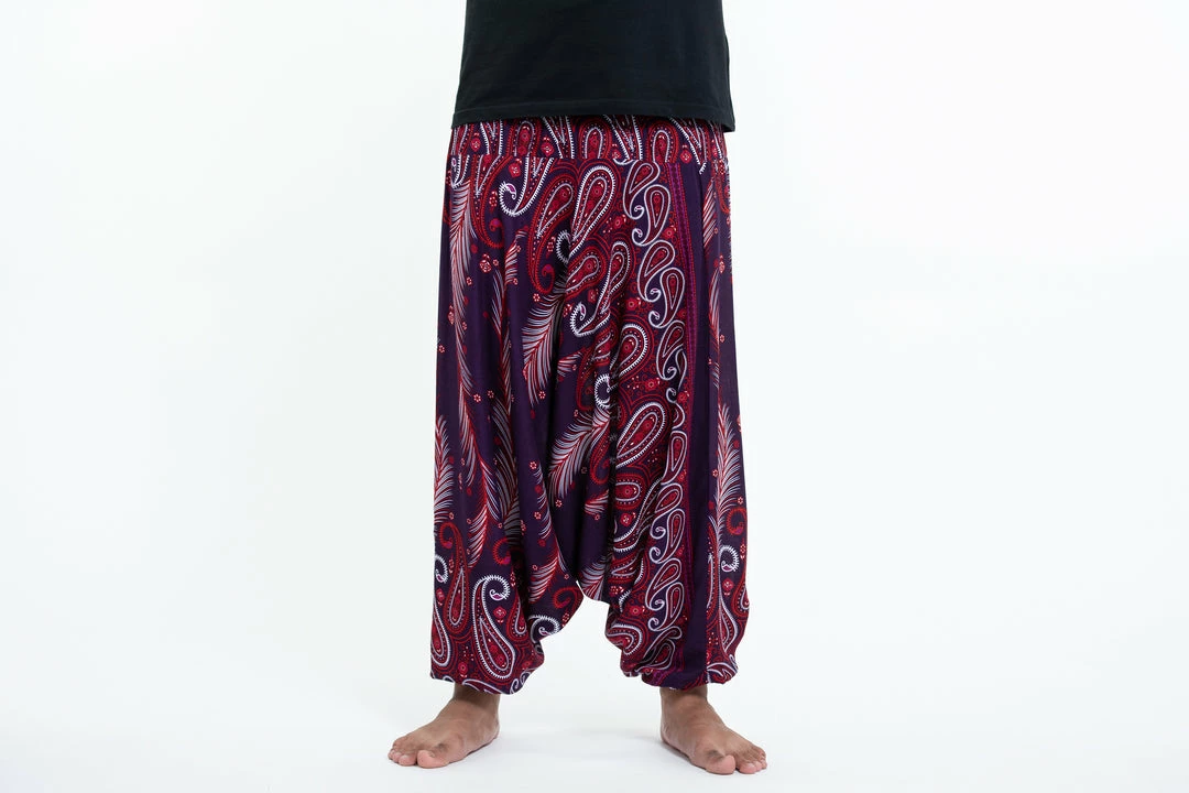 HaremPants.com Paisley Feathers Drop Crotch Men’s Harem Pants In Purple