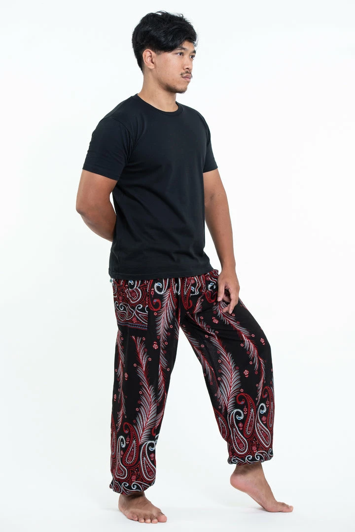Super soft and lightweight Paisley Feathers Harem Pants made with Thai rayon fabric.