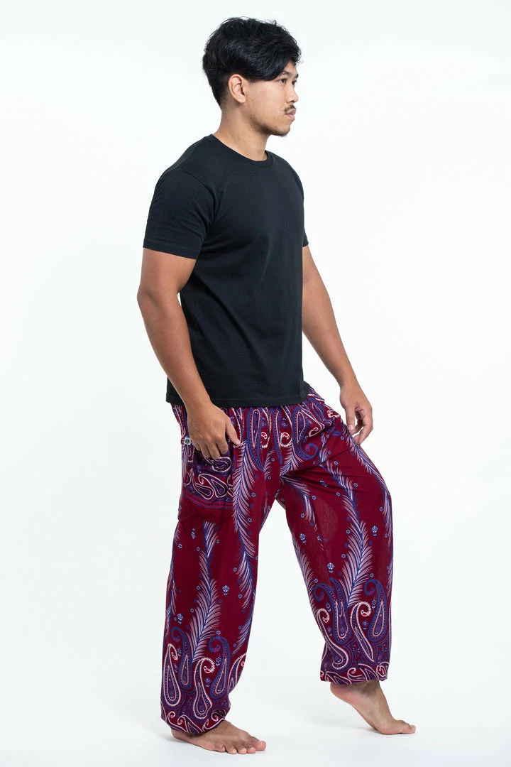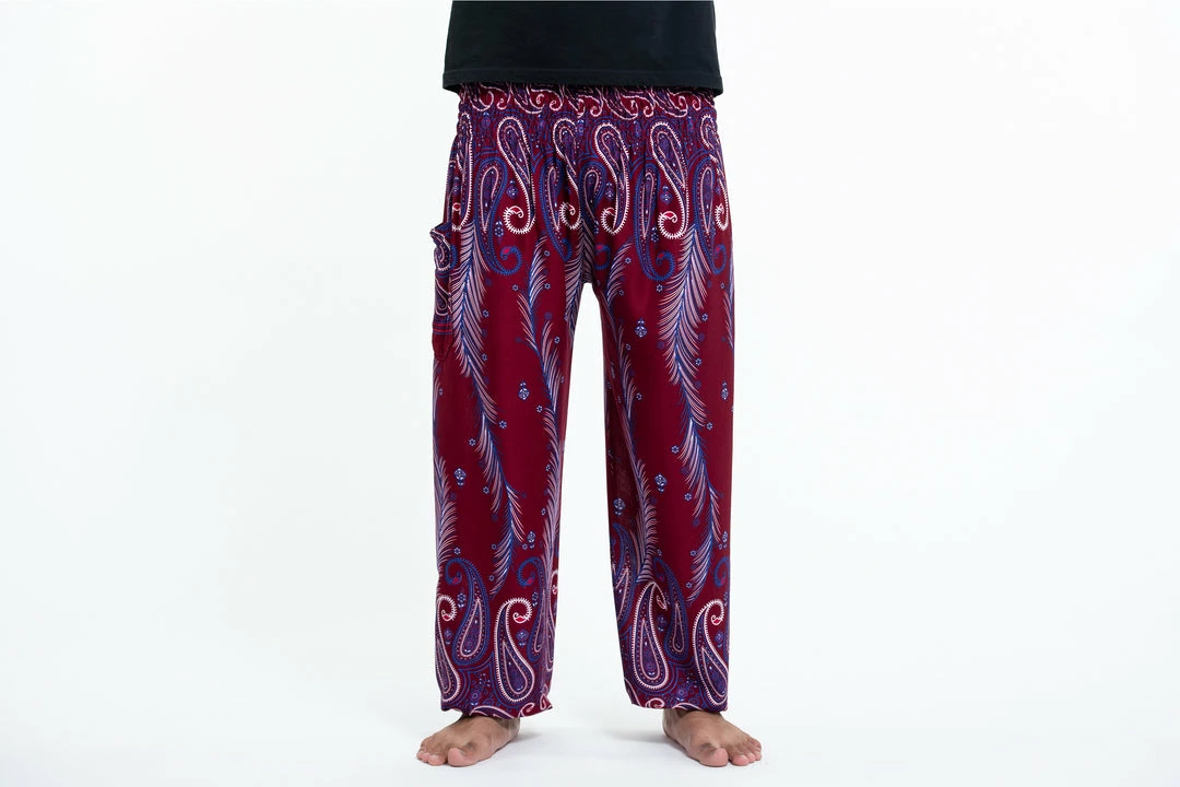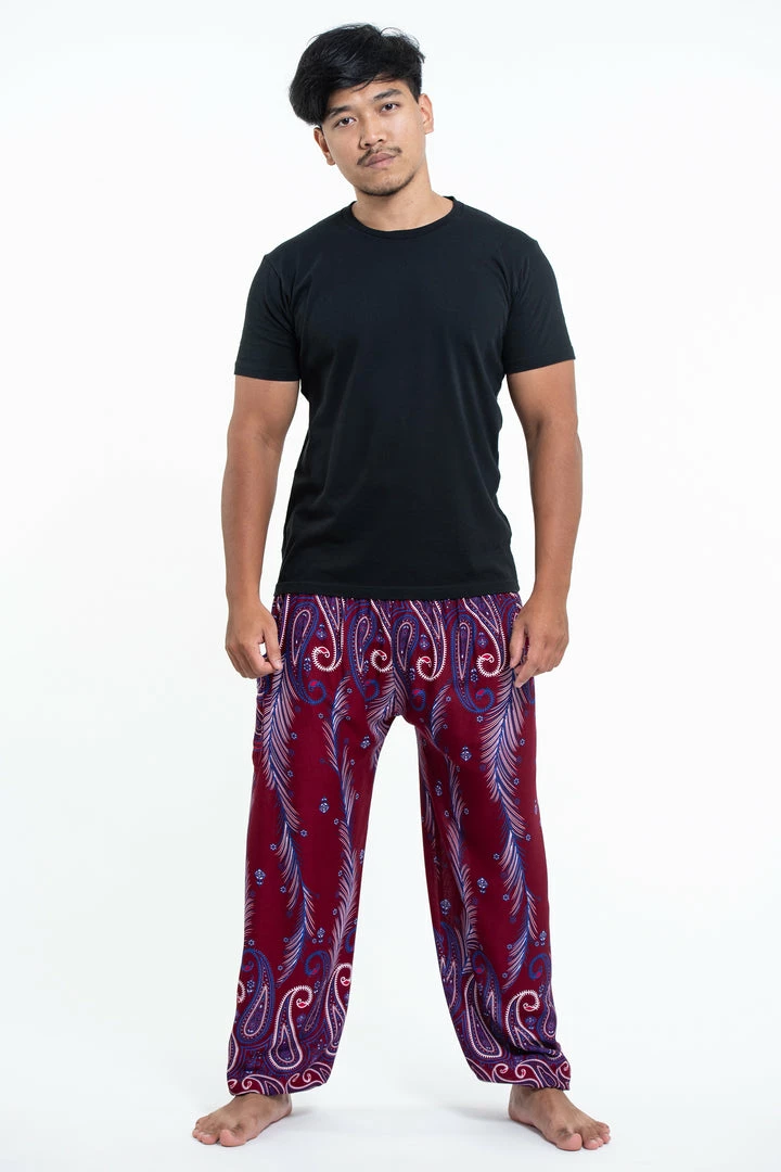Super soft and lightweight Paisley Feathers Harem Pants made with Thai rayon fabric.