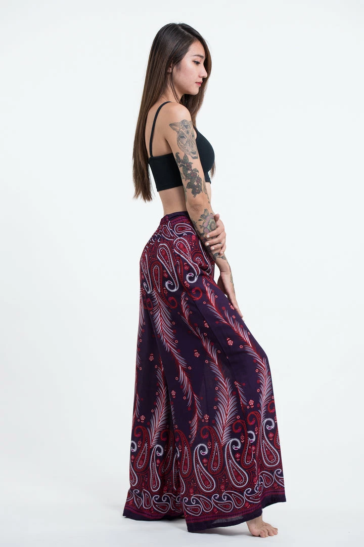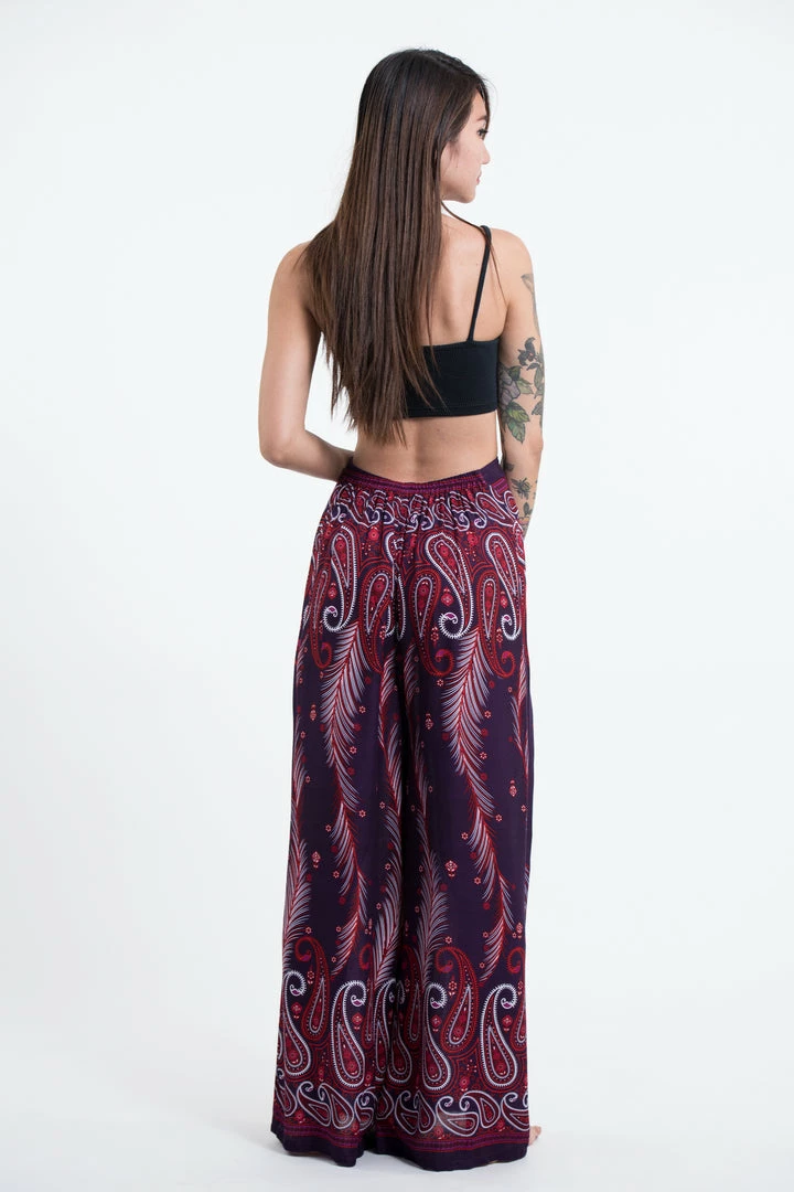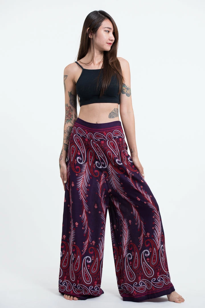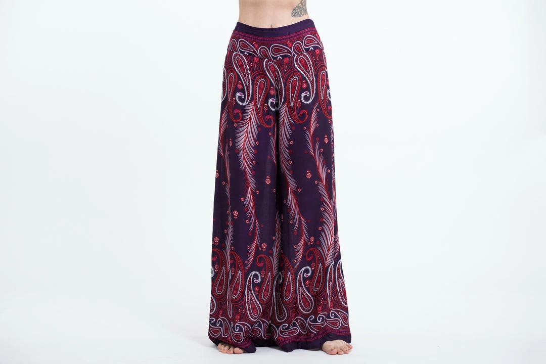 HaremPants.com Paisley Feathers Palazzo Style Harem Pants In Purple