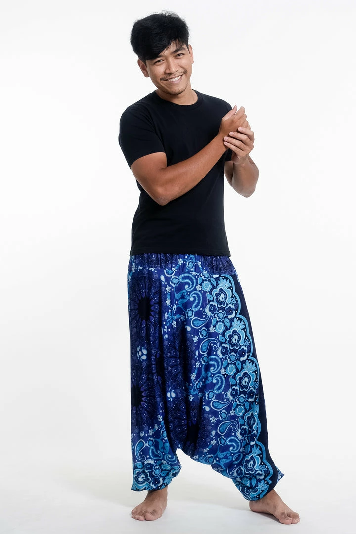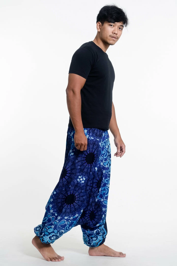 HaremPants.com Paisley Mandalas Drop Crotch Men’s Harem Pants In Blue