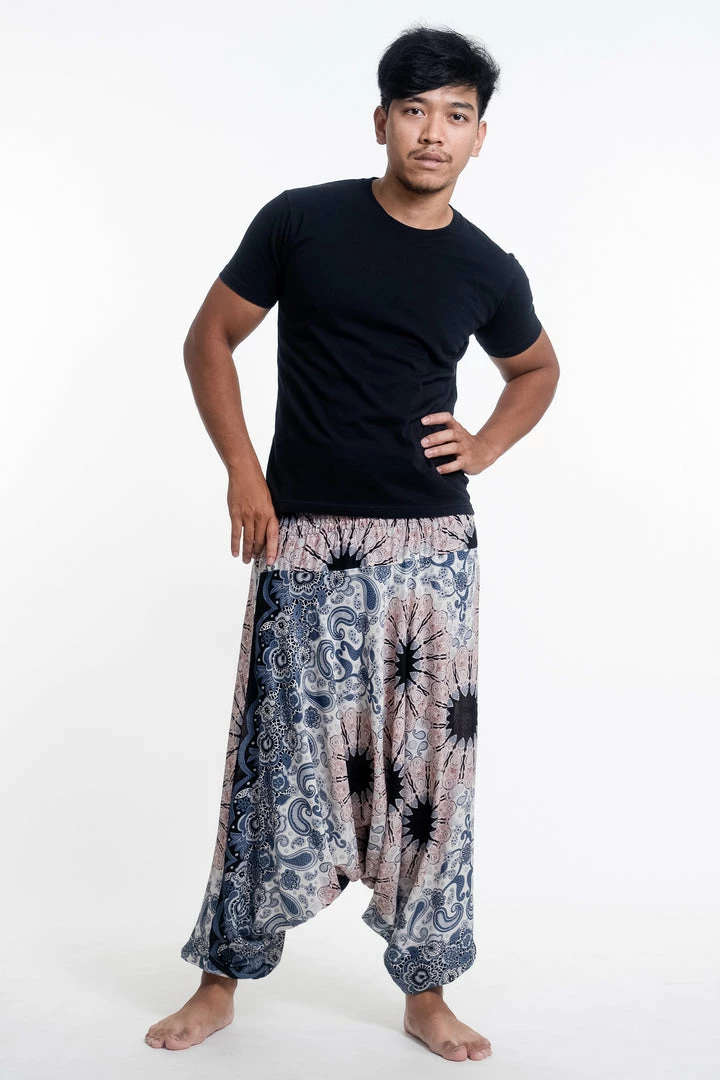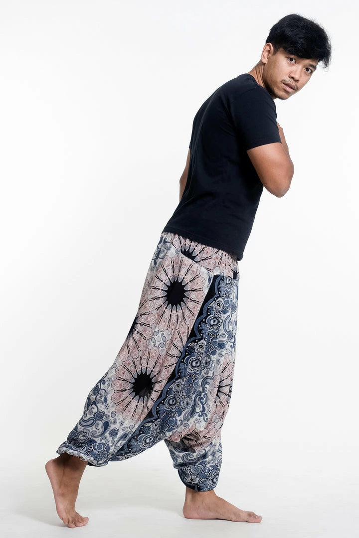 HaremPants.com Paisley Mandalas Drop Crotch Men’s Harem Pants In Silver Gray