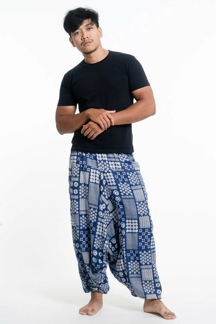 Super soft double layered Thai cotton pants in comfy low cut style with beautiful blue indigo dyed print.
