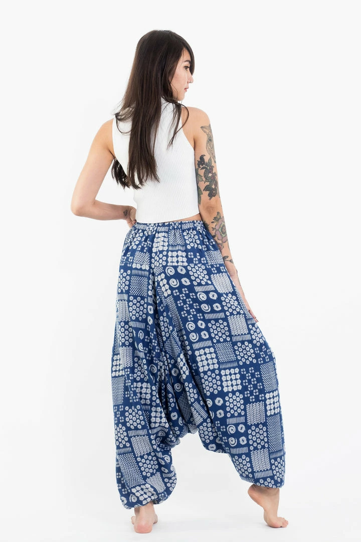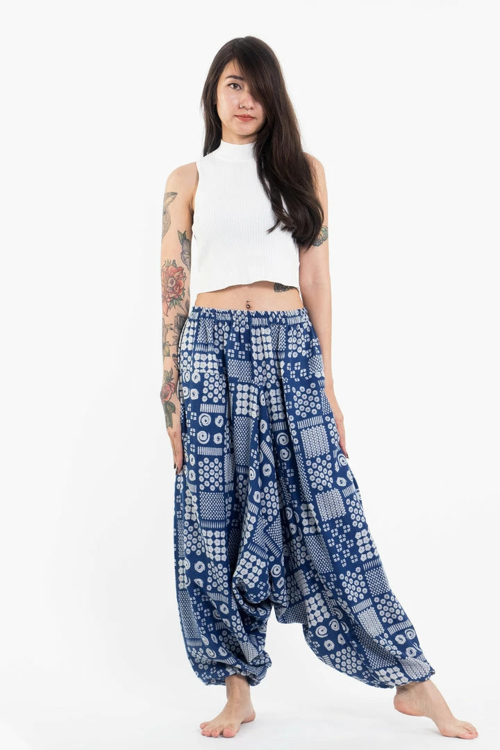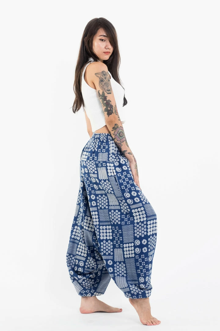 Super soft double layered Thai cotton pants in comfy low cut style with beautiful blue indigo dyed print.