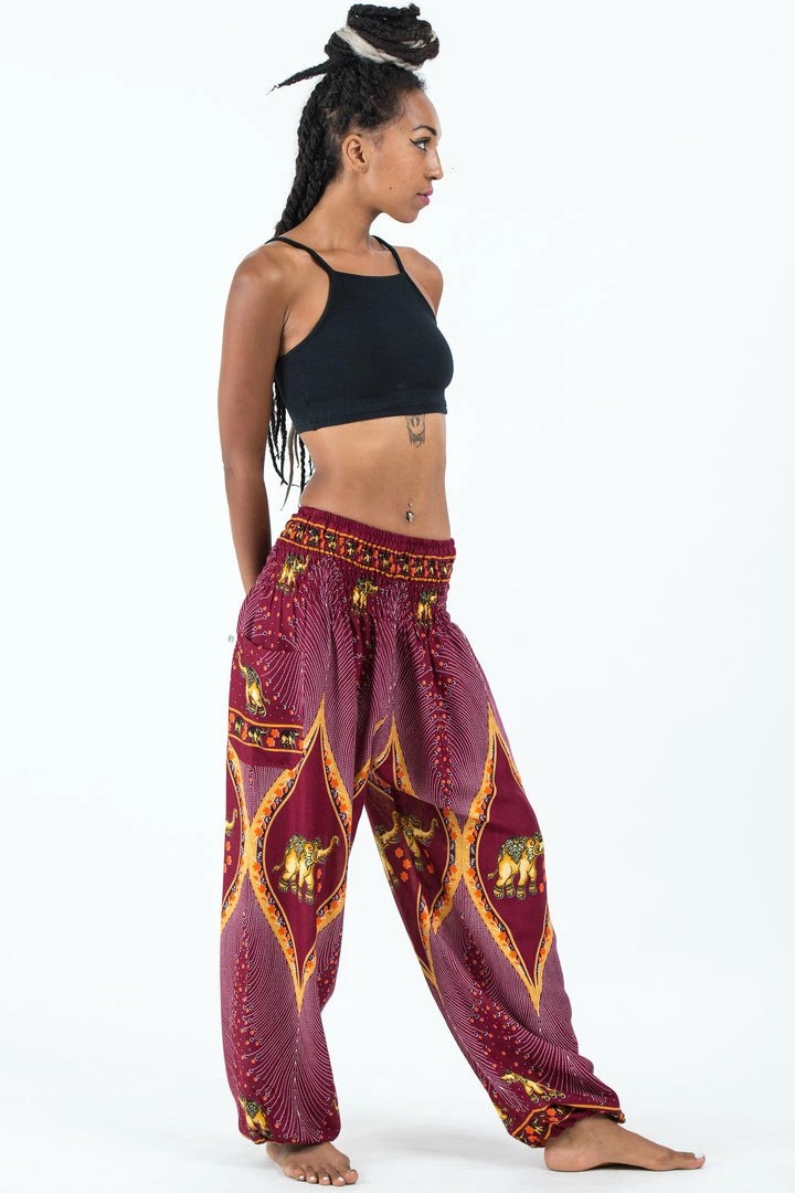 Super soft and lightweight Peacock Elephant Pants made with Thai rayon fabric.