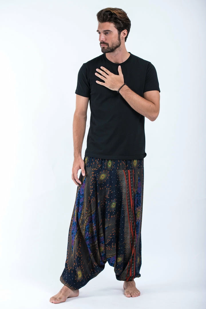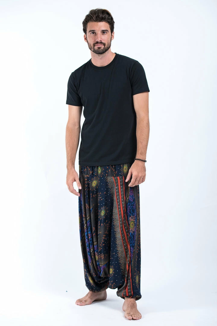 HaremPants.com Peacock Eye Drop Crotch Men’s Harem Pants In Navy