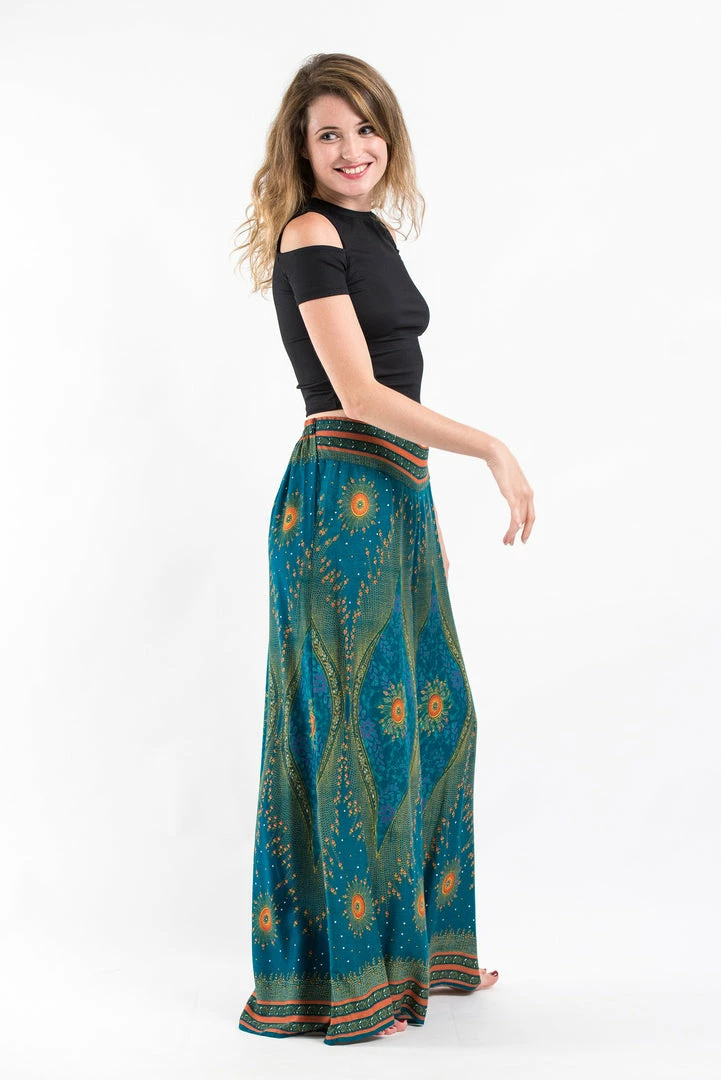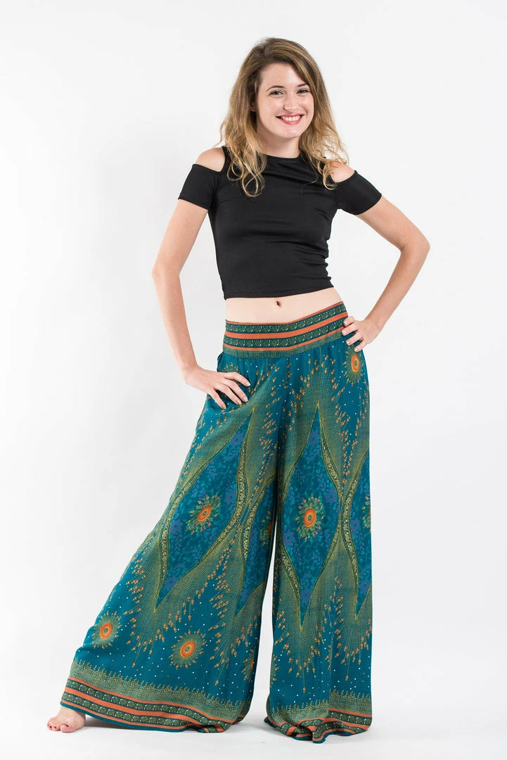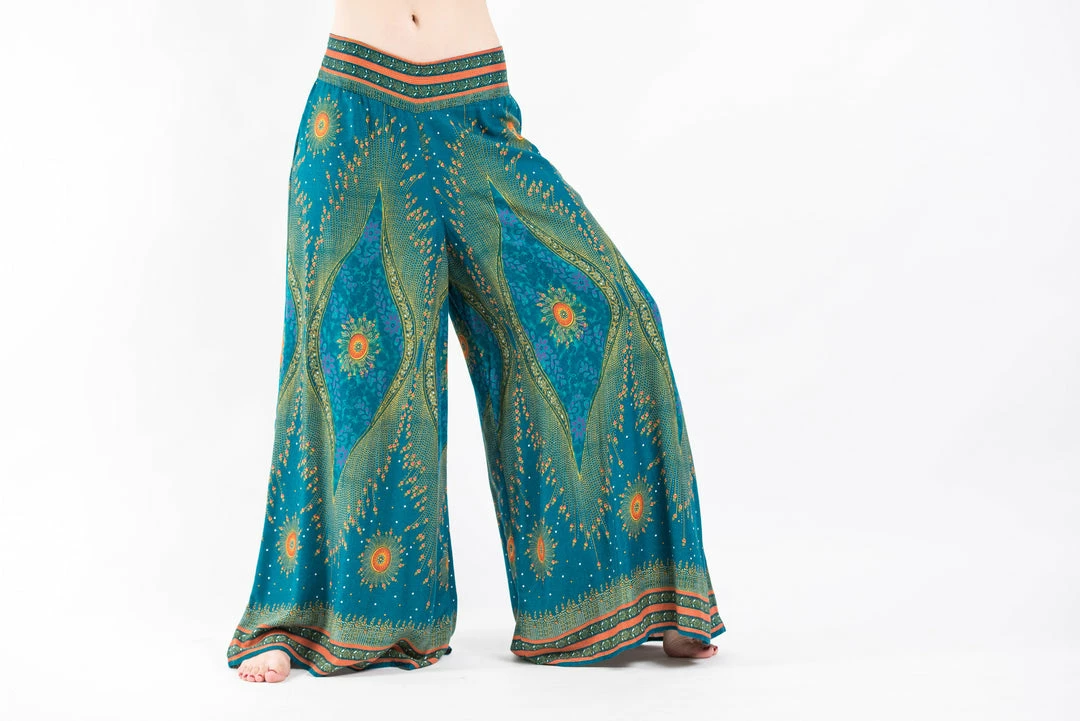 HaremPants.com Peacock Eyes Palazzo Style Harem Pants In Turquoise