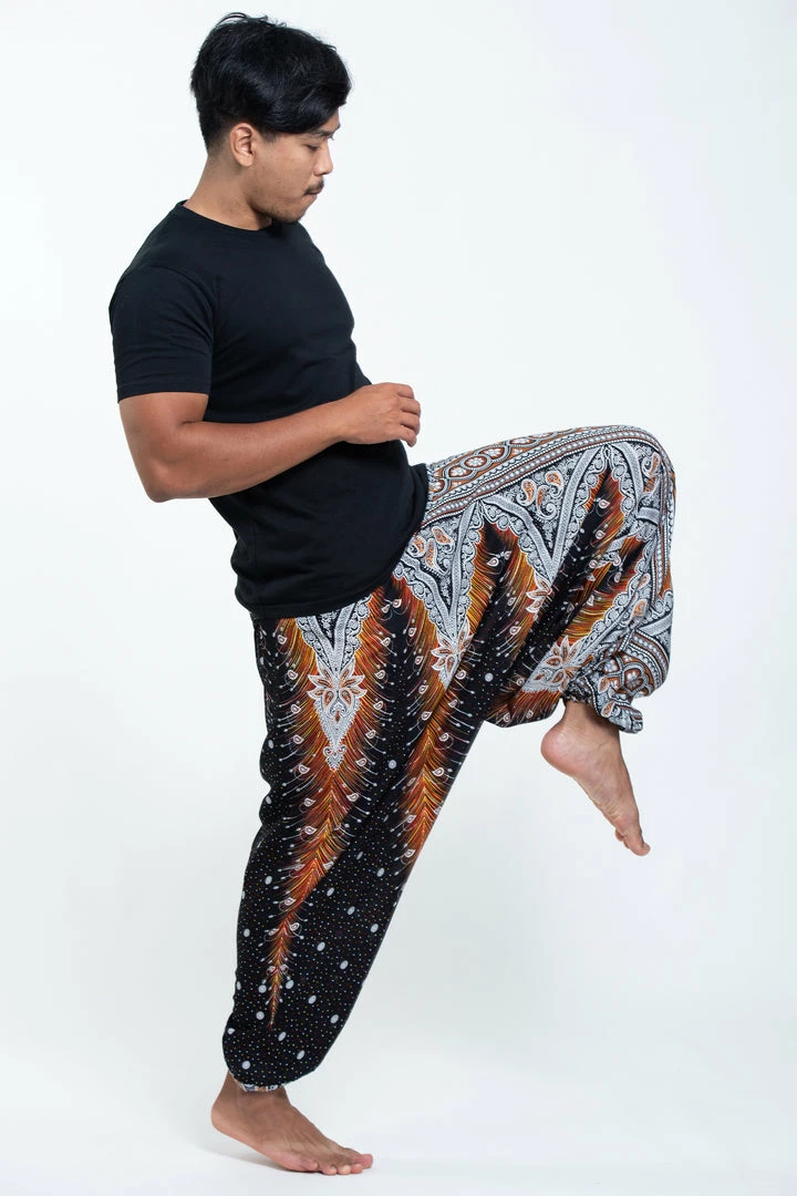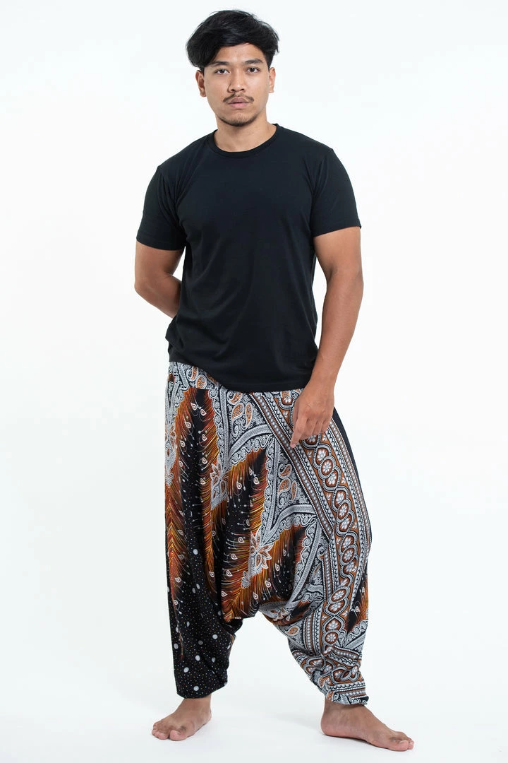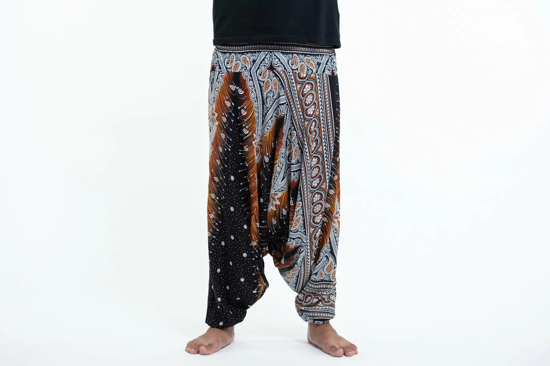 HaremPants.com Peacock Feathers Drop Crotch Men’s Harem Pants In Black