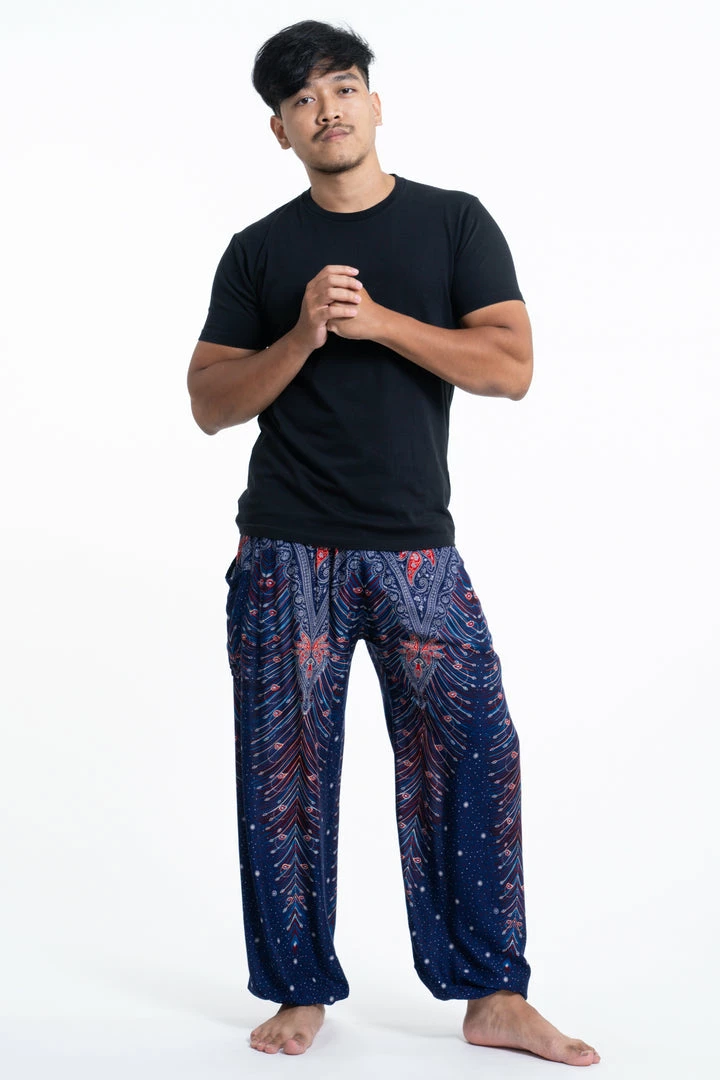 Super soft and lightweight Peacock Feathers Harem Pants made with Thai rayon fabric.