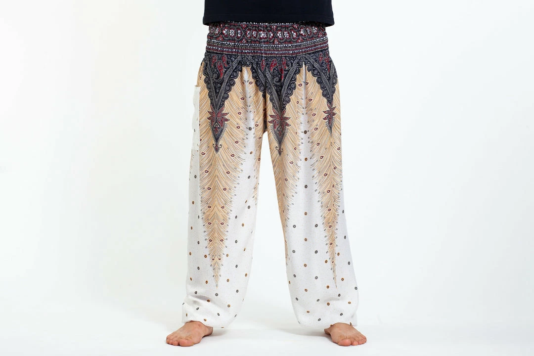 Super soft and lightweight Peacock Feathers Harem Pants made with Thai rayon fabric.