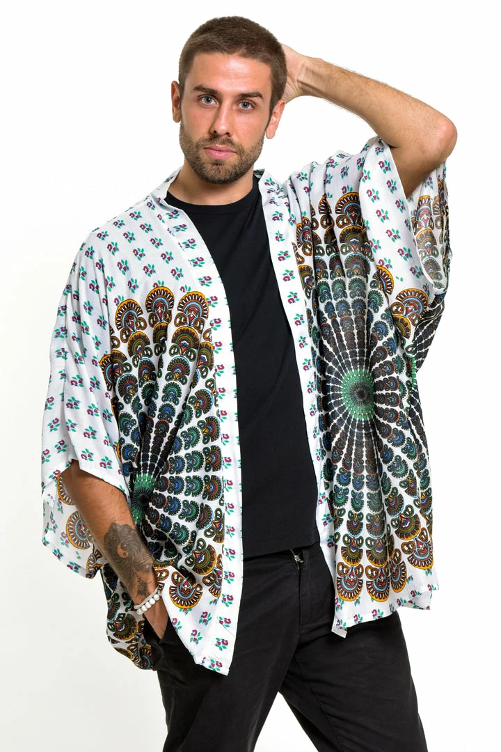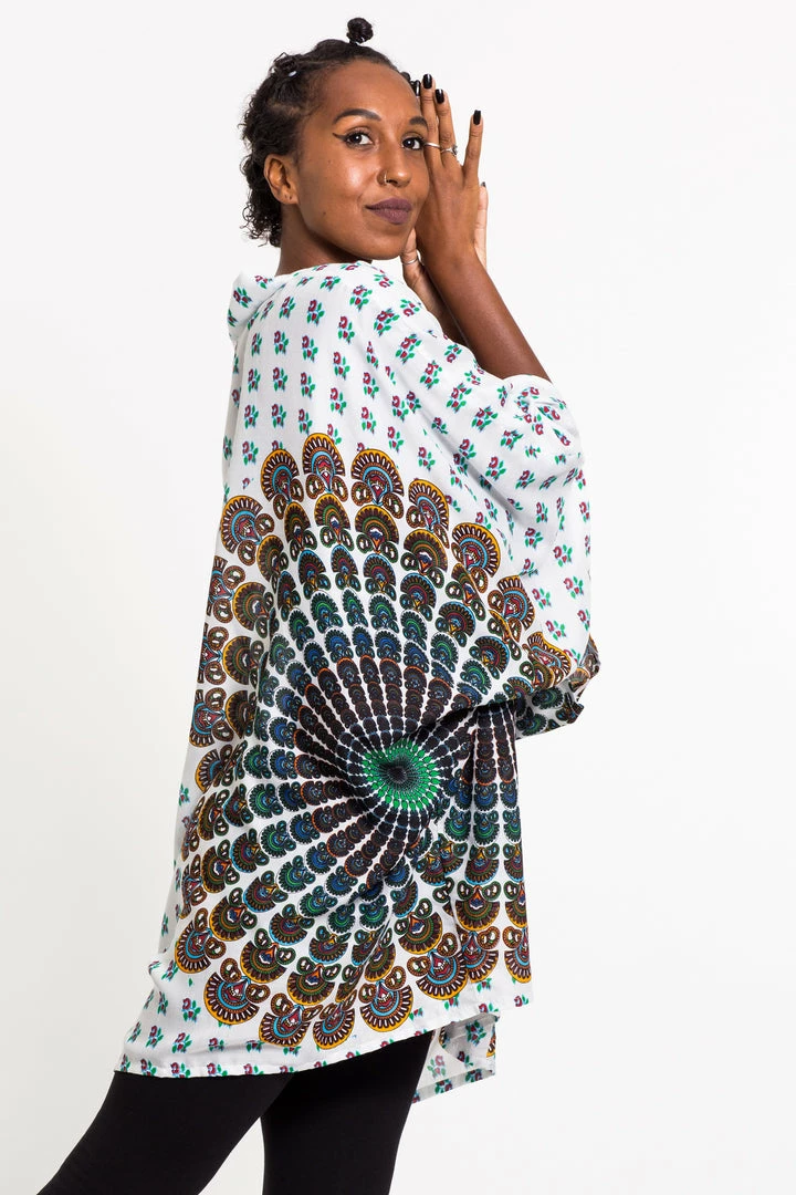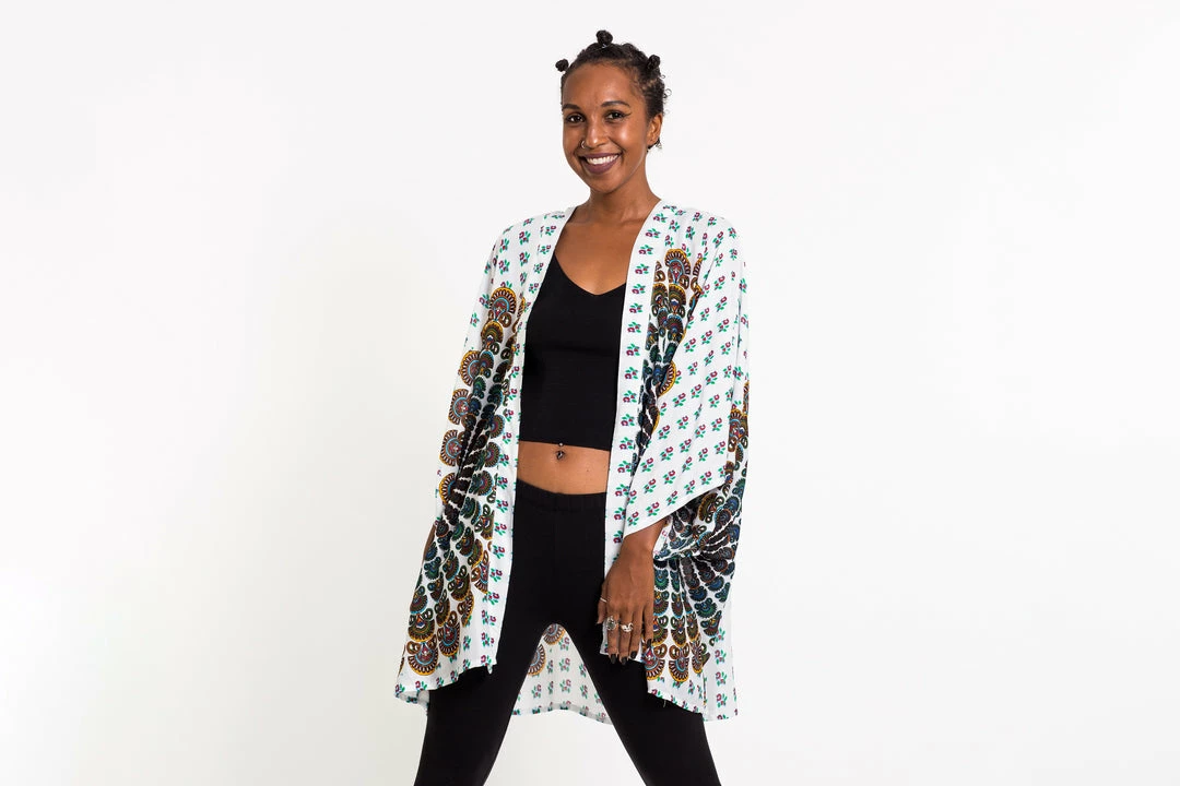 Soft flowy all-around marvelous Kimono Cardigan featuring beautiful electric funky pattern made with Thai rayon fabric.