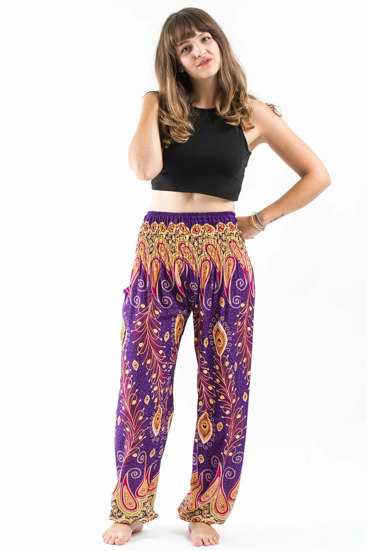 Super soft and lightweight Peacock Paisley Harem Pants made with Thai rayon fabric.