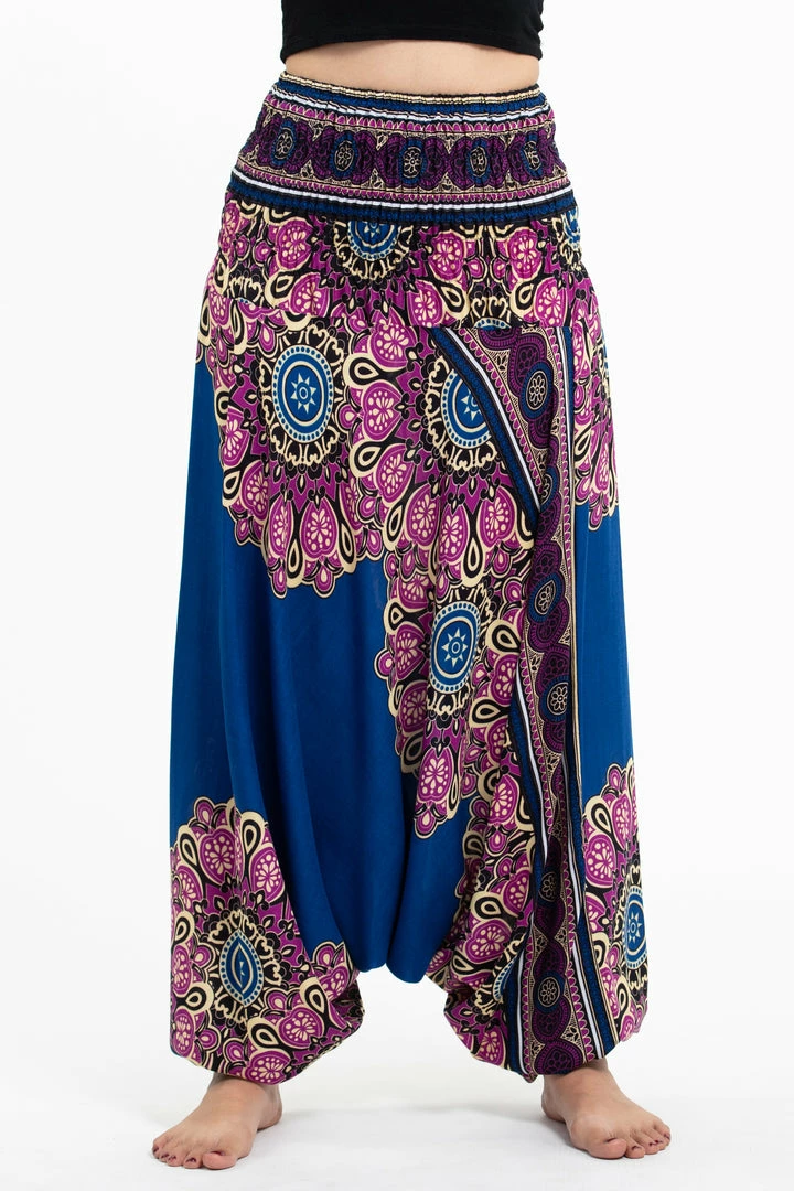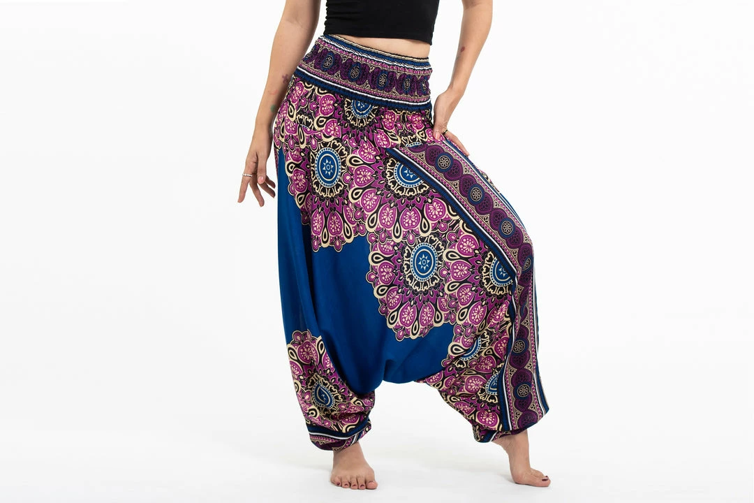 HaremPants.com Peony Mandalas Drop Crotch Men’s Harem Pants In Blue