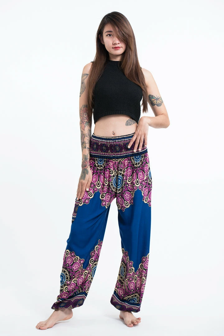 Super soft and lightweight Peony Mandalas Harem Pants made with Thai rayon fabric.