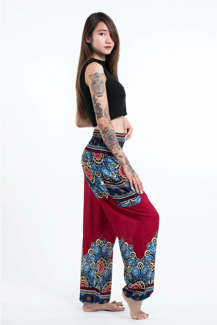 HaremPants.com Peony Mandalas Women’s Harem Pants In Red