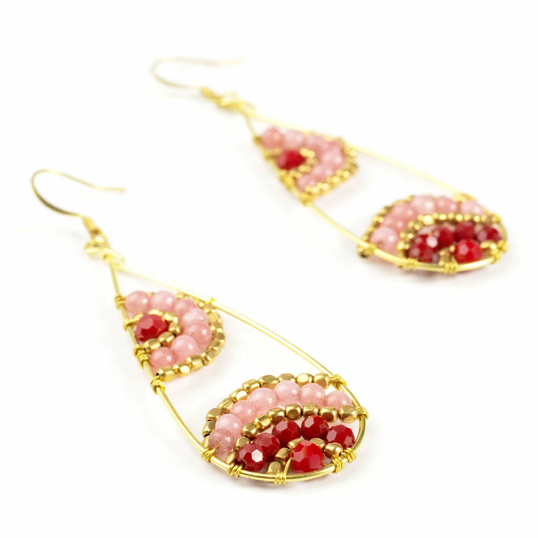 Beautiful Thai artisan handcrafted wired brass teardrop hoop dangle earrings with lovely beads.