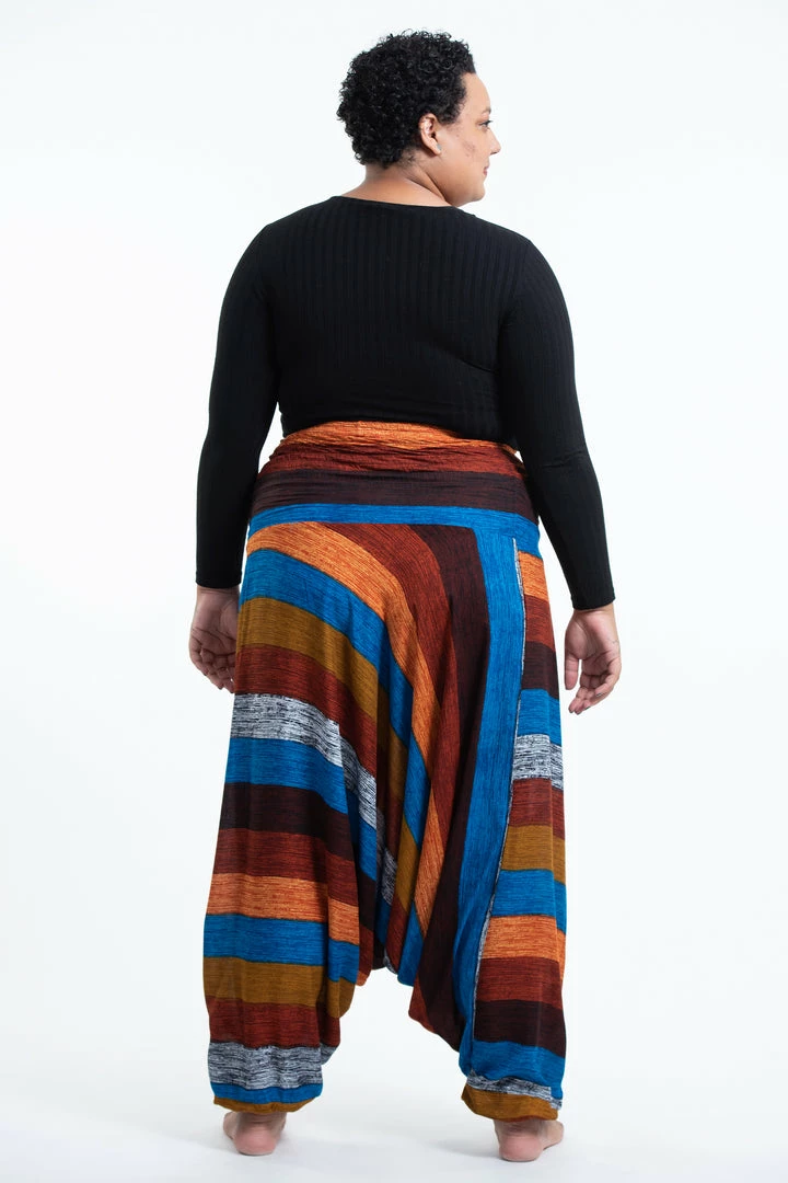 HaremPants.com Plus Size Boho Rust Striped Drop Crotch Women’s Harem Pants