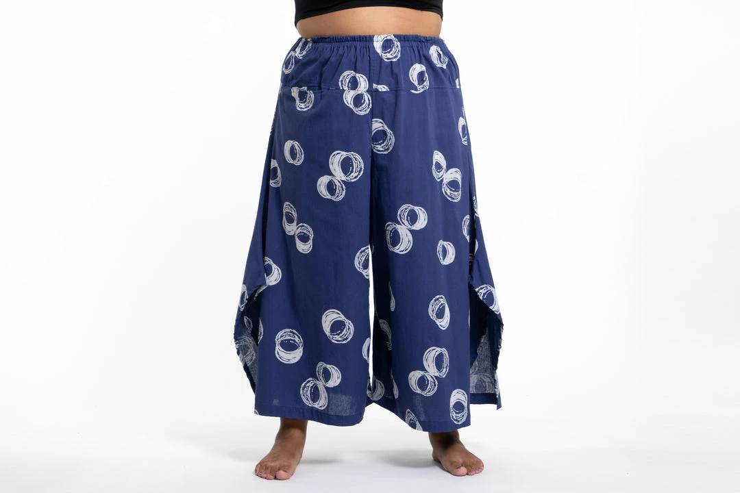 These stylish palazzo pants are made of Thai Cotton with funky prints, an elastic back waistband, and a pocket