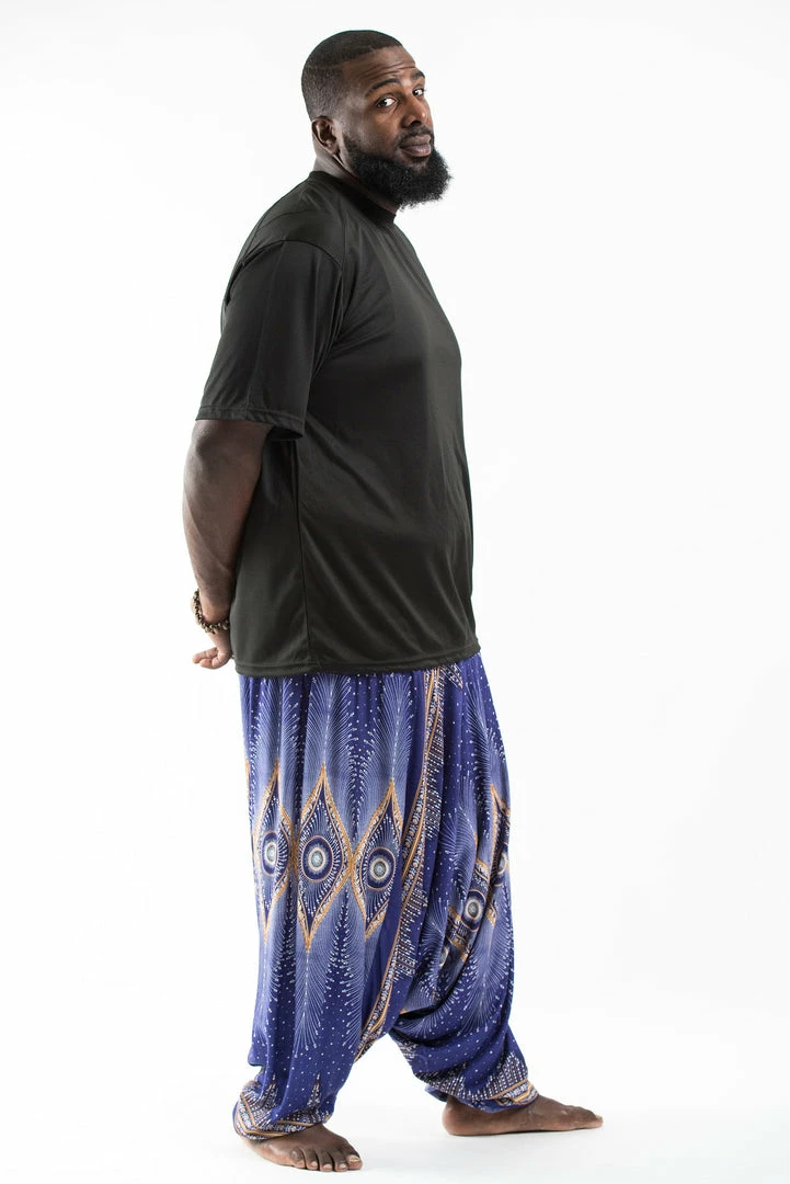 HaremPants.com Plus Size Diamond Peacock Drop Crotch Men’s Harem Pants In Blue