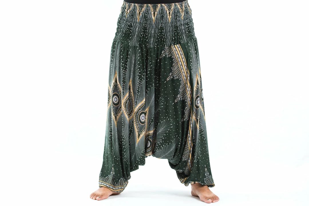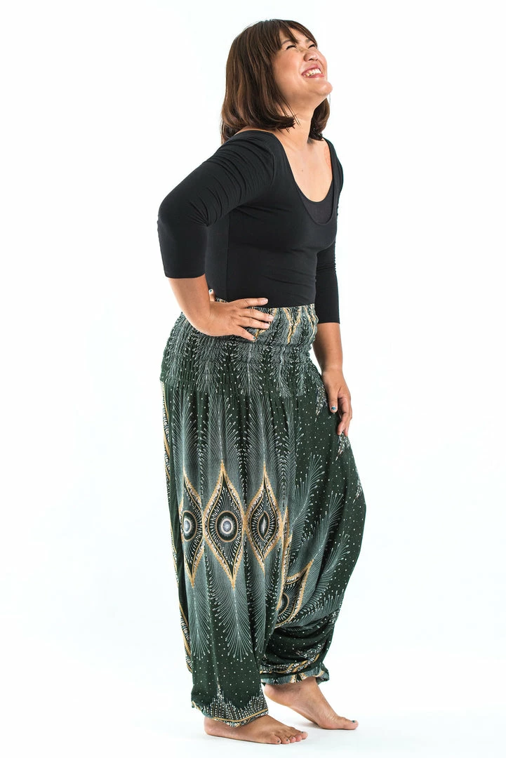 HaremPants.com Plus Size Diamond Peacock Drop Crotch Women’s Harem Pants In Green