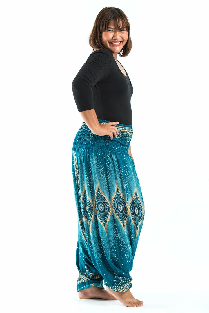 HaremPants.com Plus Size Diamond Peacock Drop Crotch Women’s Harem Pants In Turquoise