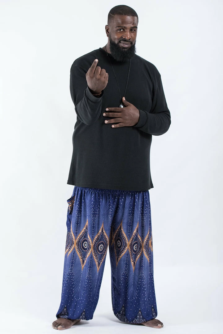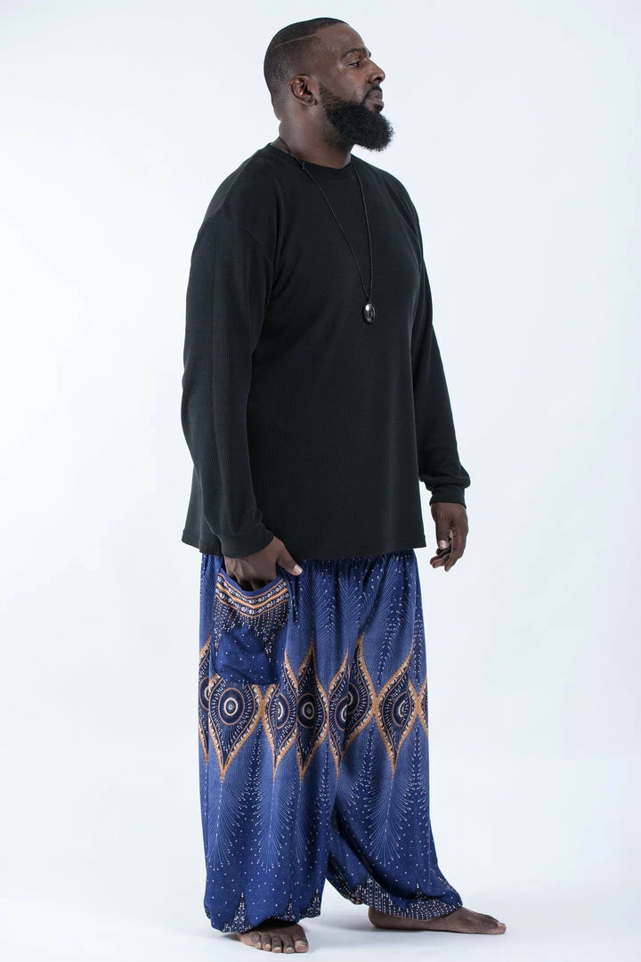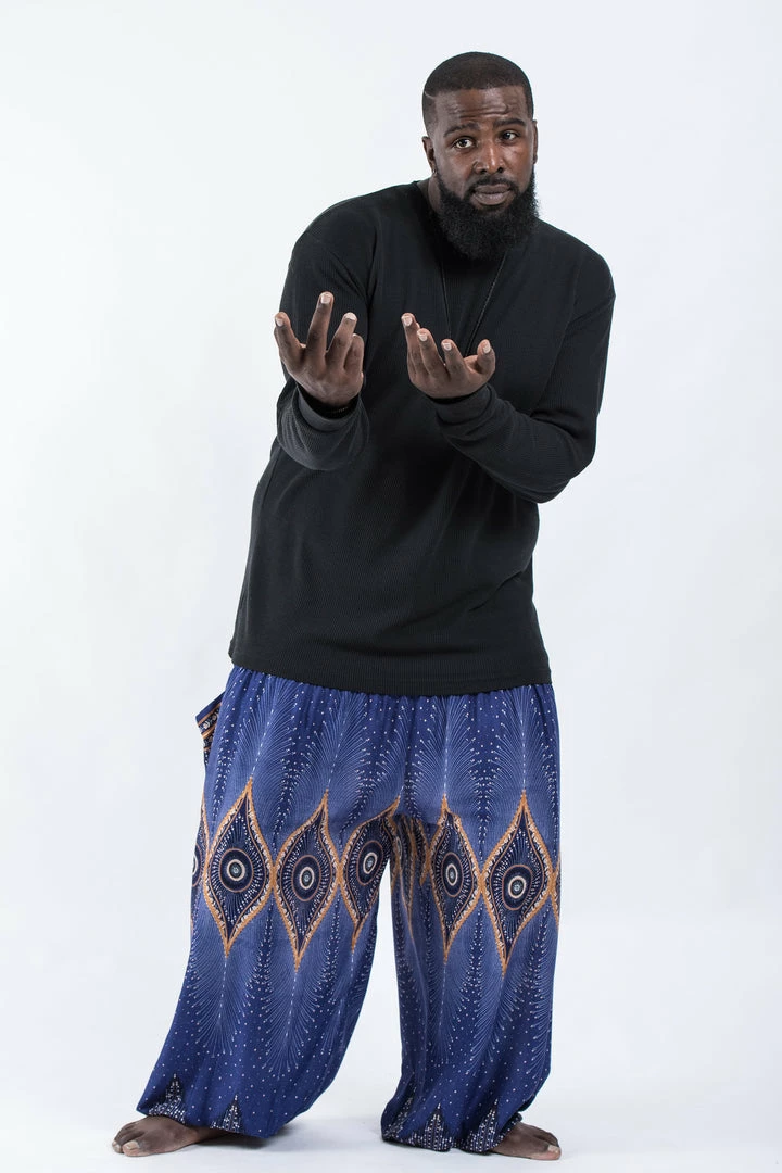 HaremPants.com Plus Size Diamond Peacock Men’s Harem Pants In Blue