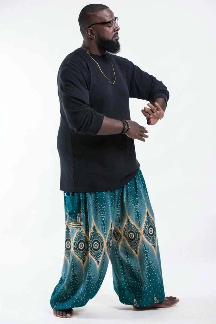 HaremPants.com Plus Size Diamond Peacock Men’s Harem Pants In Turquoise