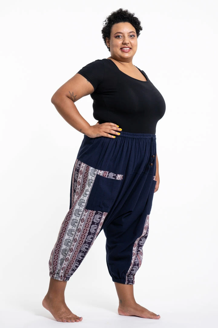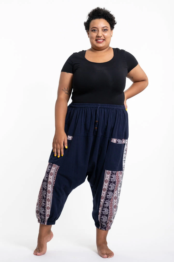 Plus Size Elephant Aztec Cotton Harem Pants come with 2 perfect side pockets. They offer comfort and stylish look. Great for any occasion.