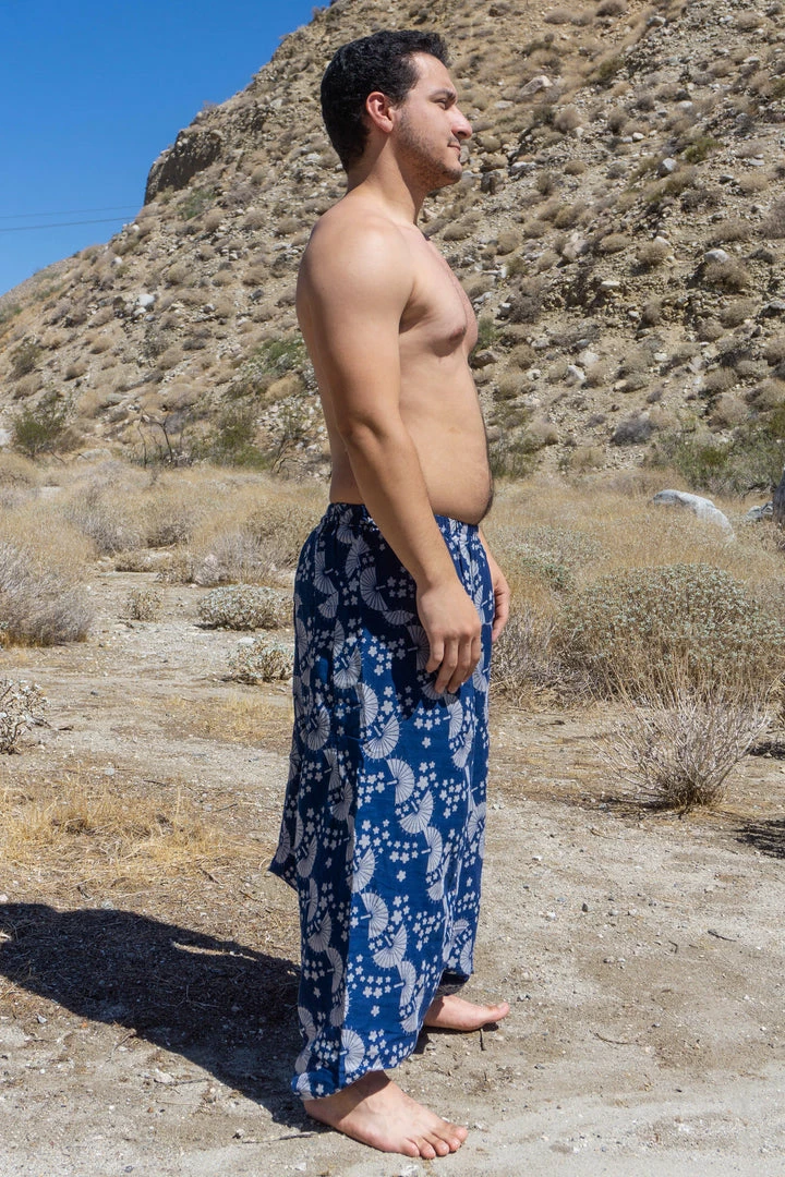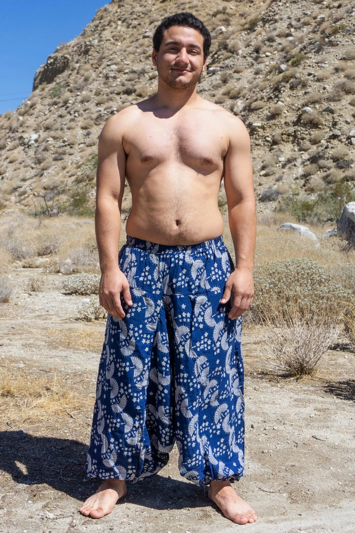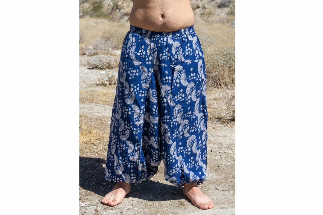 HaremPants.com Plus Size Fan Prints Men’s Low Cut Cotton Harem Pants In Indigo Women’s