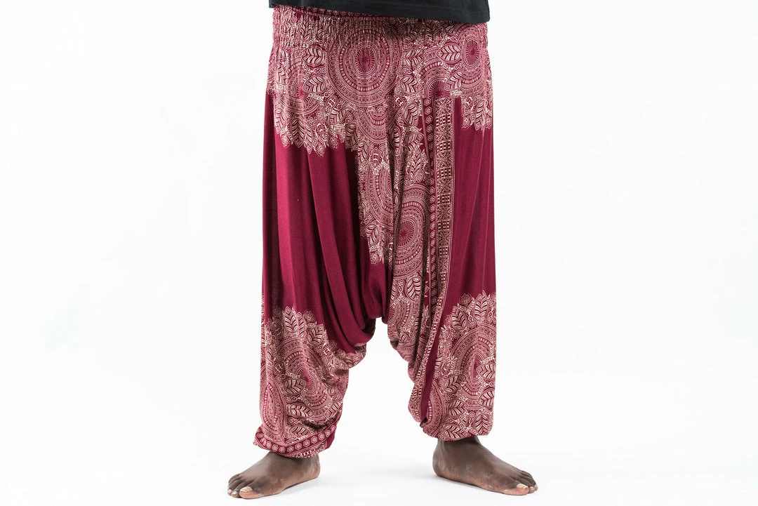 HaremPants.com Plus Size Floral Mandalas Drop Crotch Men’s Harem Pants In Red