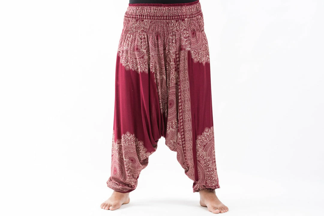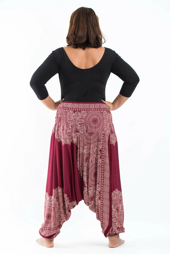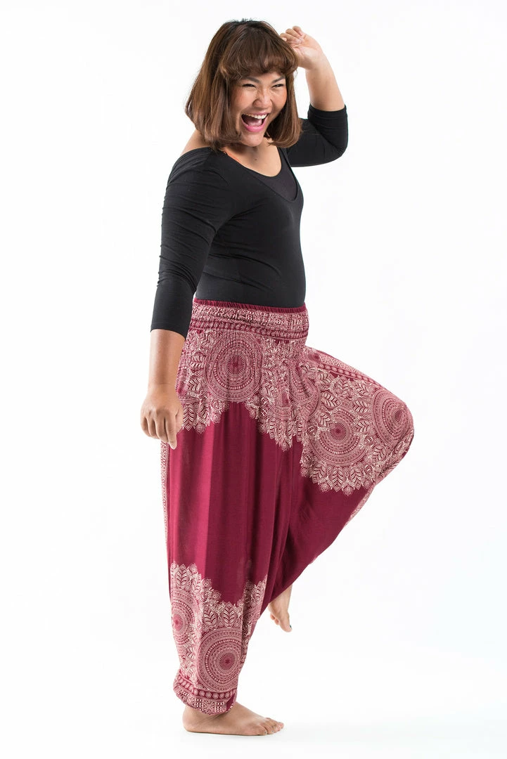 HaremPants.com Plus Size Floral Mandalas Drop Crotch Women’s Harem Pants In Red