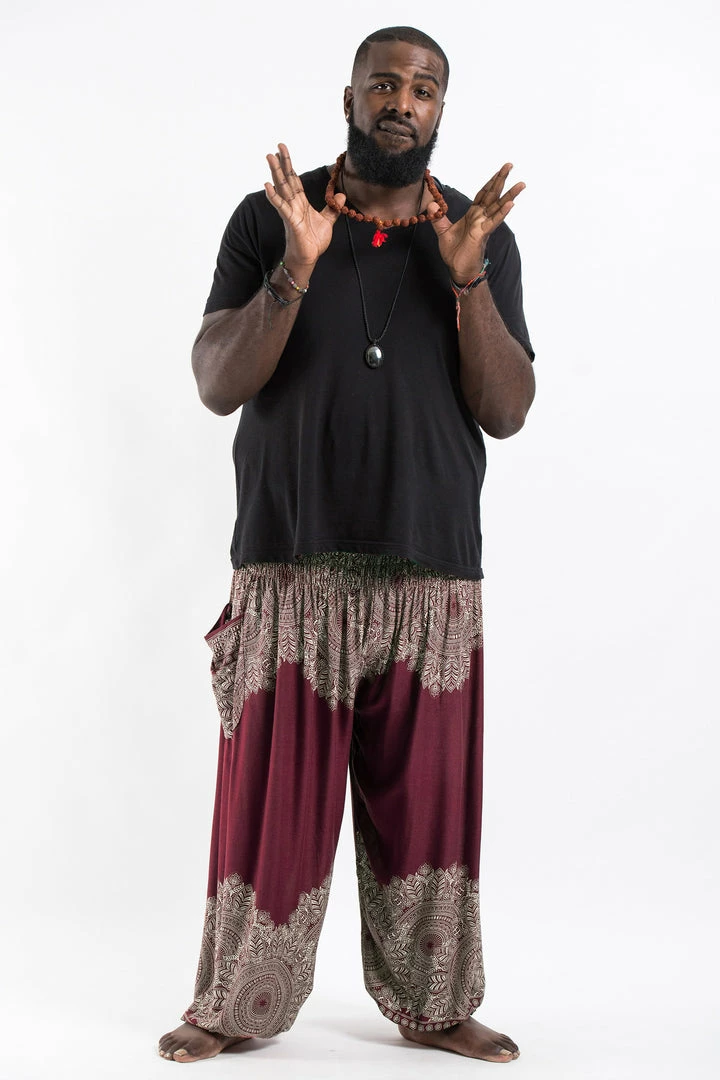 HaremPants.com Plus Size Floral Mandalas Men’s Harem Pants In Maroon