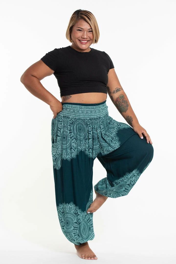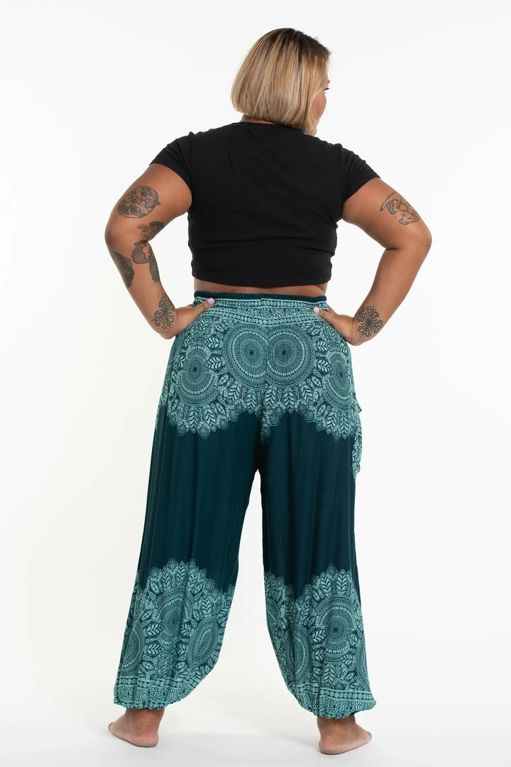 HaremPants.com Plus Size Floral Mandalas Women’s Harem Pants In Teal