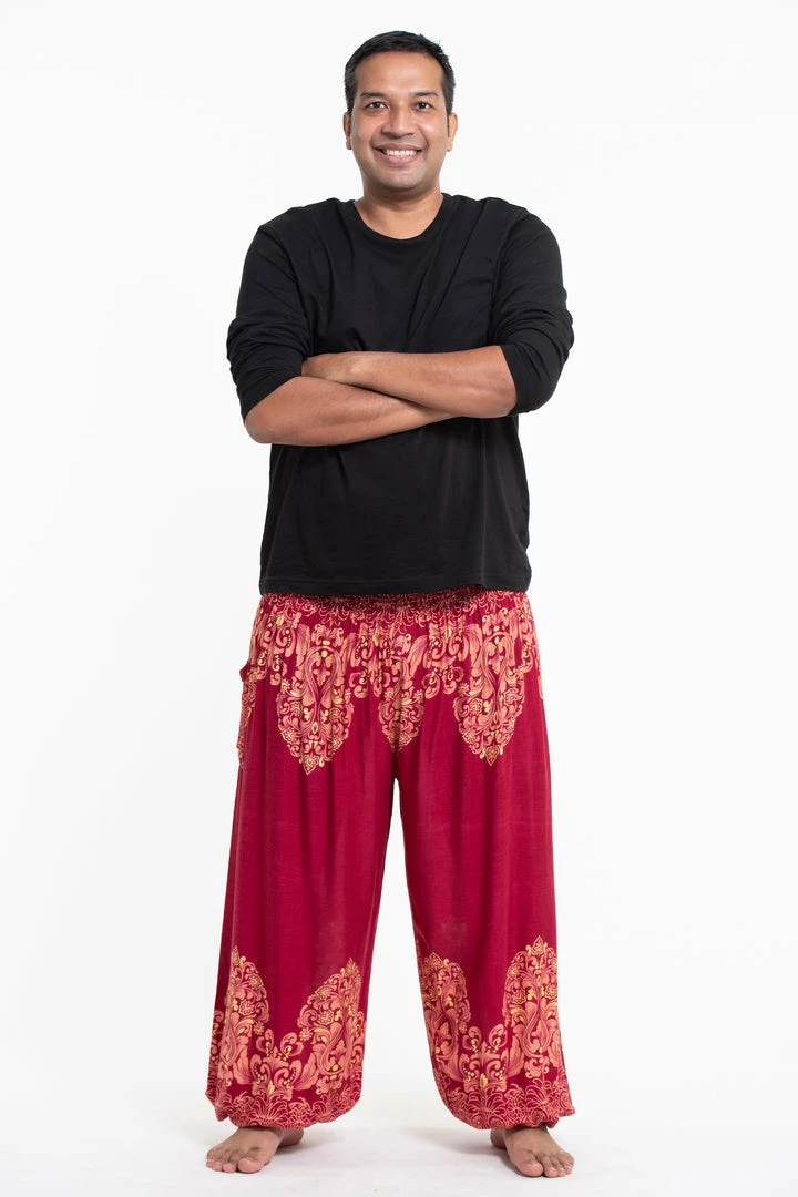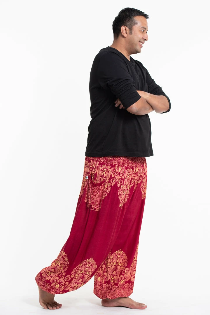 HaremPants.com Plus Size Floral Vines Men’s Harem Pants In Red