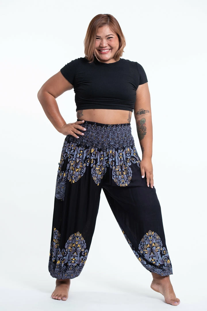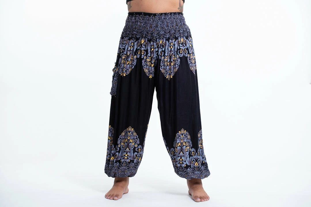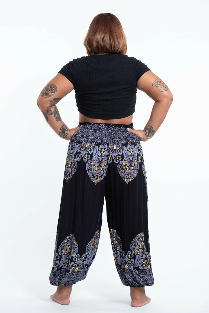 HaremPants.com Plus Size Floral Vines Women’s Harem Pants In Black