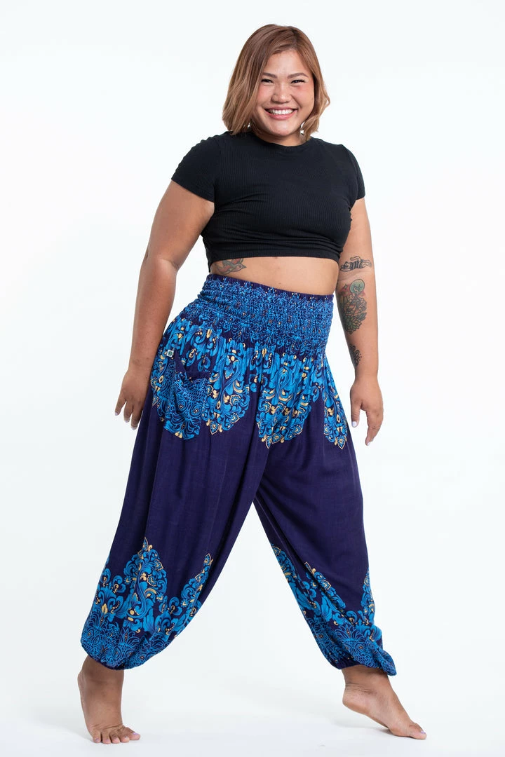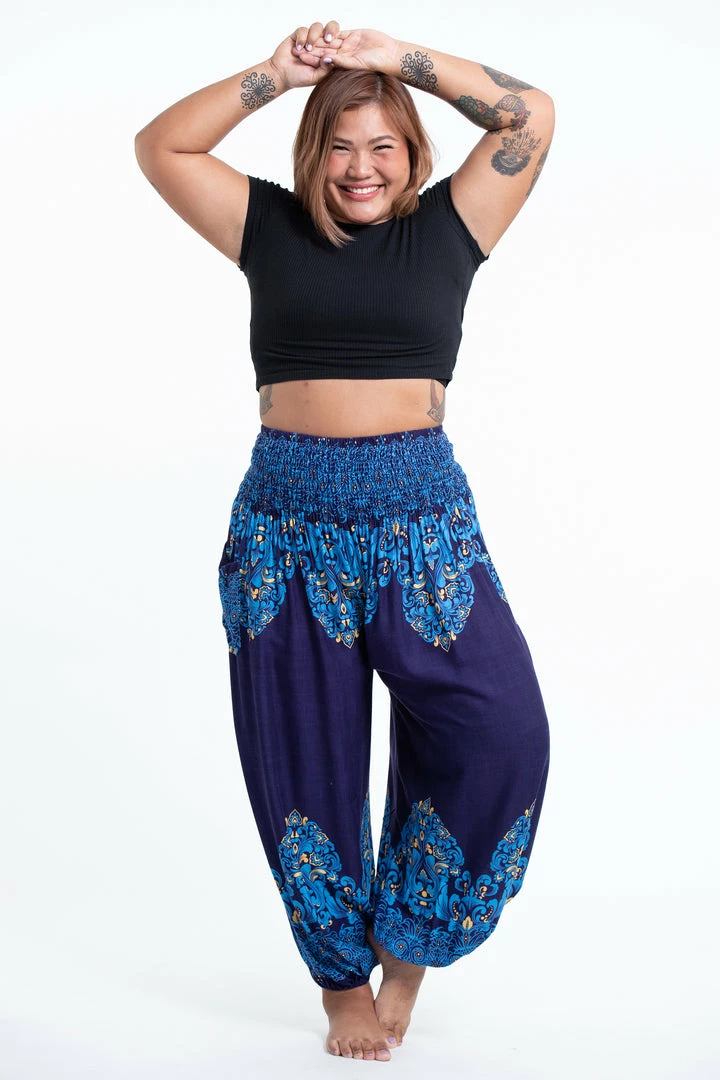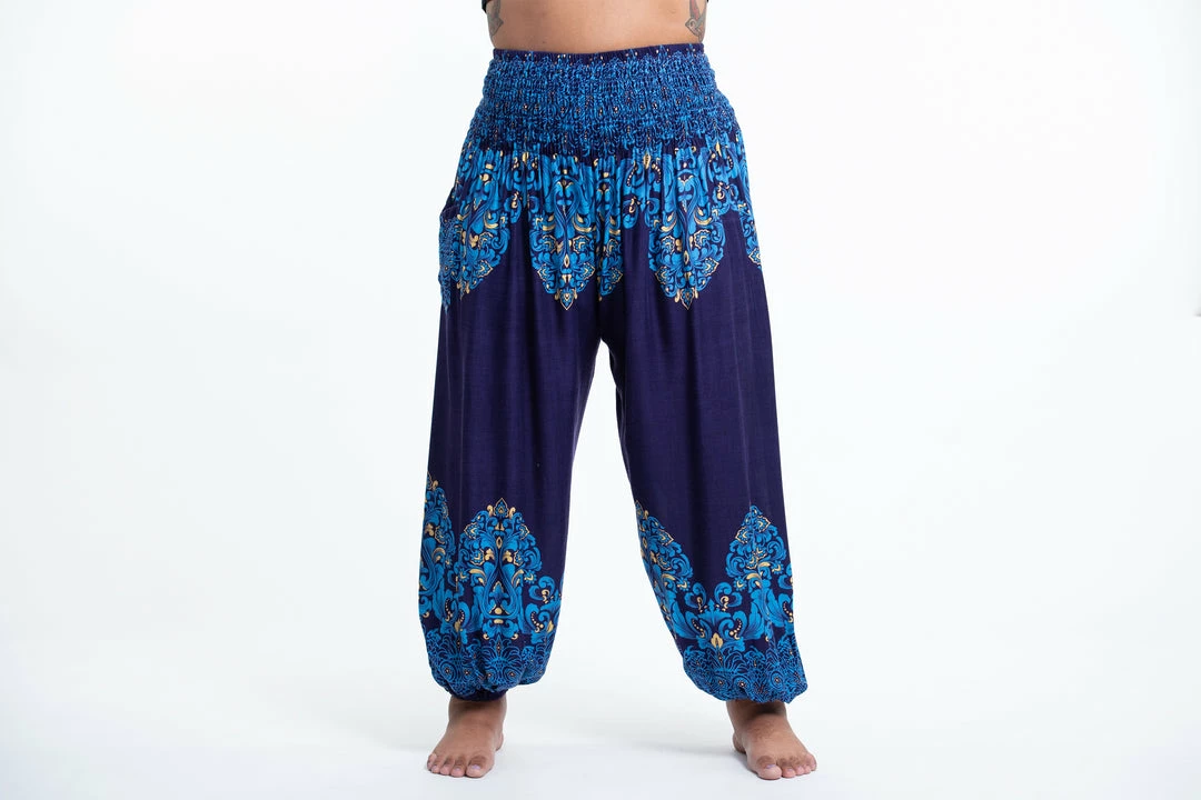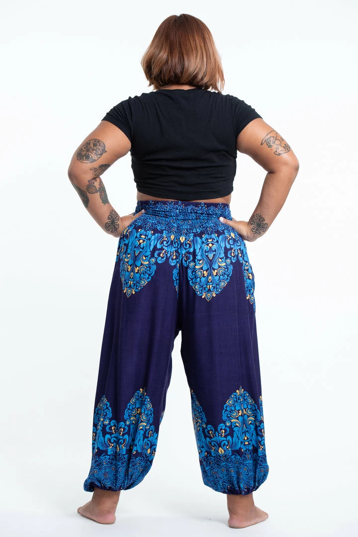 HaremPants.com Plus Size Floral Vines Women’s Harem Pants In Blue
