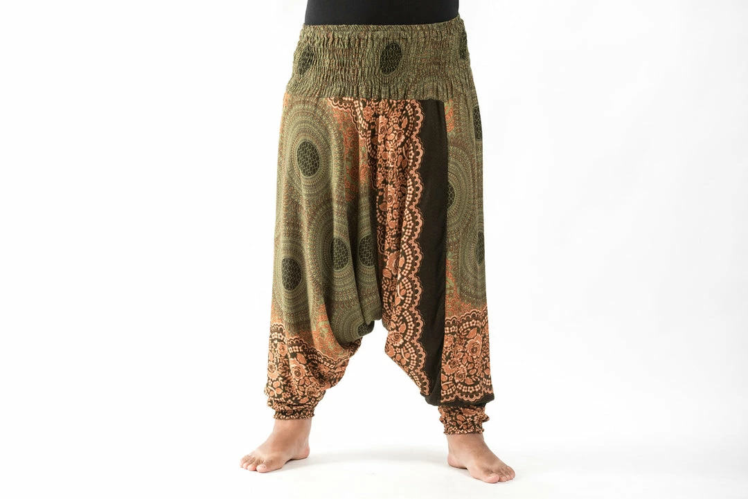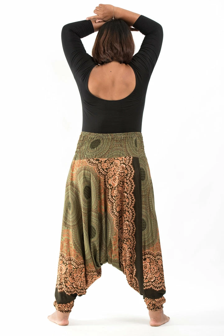 HaremPants.com Plus Size Geometric Mandalas Drop Crotch Women’s Harem Pants In Olive