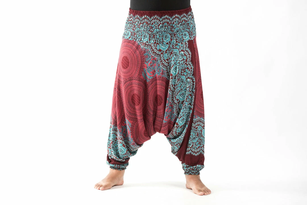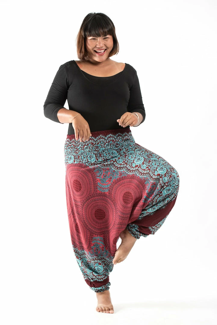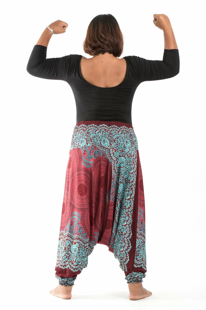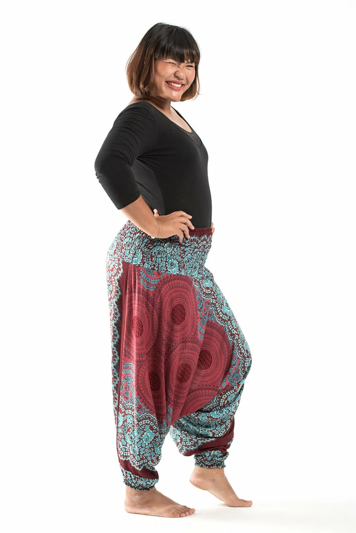 HaremPants.com Plus Size Geometric Mandalas Drop Crotch Women’s Harem Pants In Red