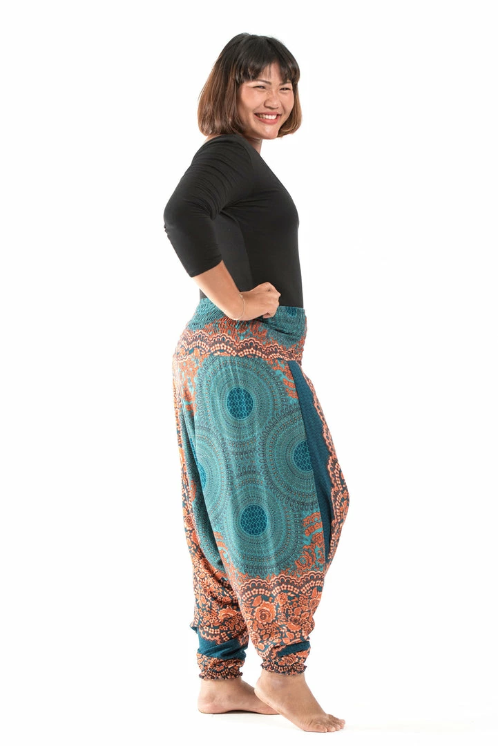 HaremPants.com Plus Size Geometric Mandalas Drop Crotch Women’s Harem Pants In Turquoise