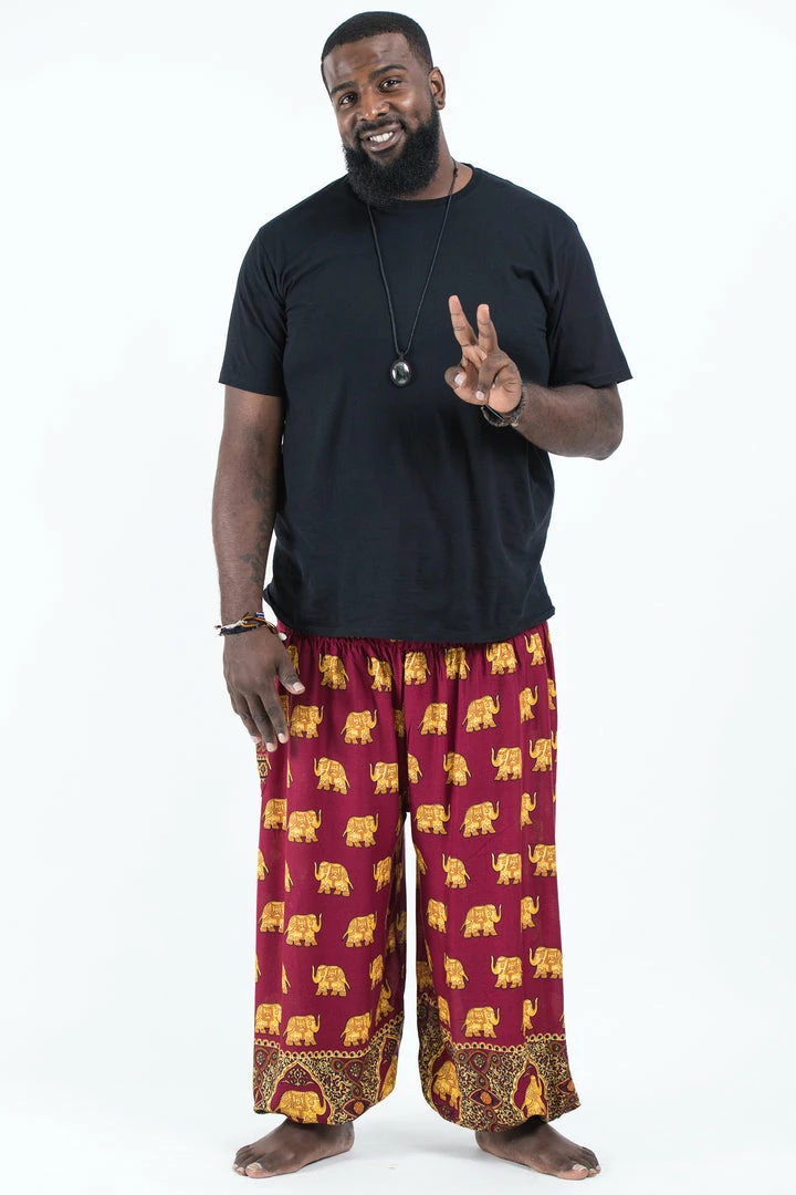 HaremPants.com Plus Size Golden Elephant Men’s Elephant Pants In Maroon