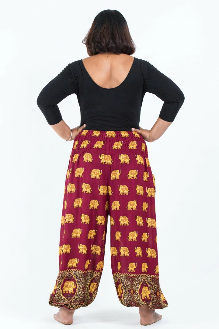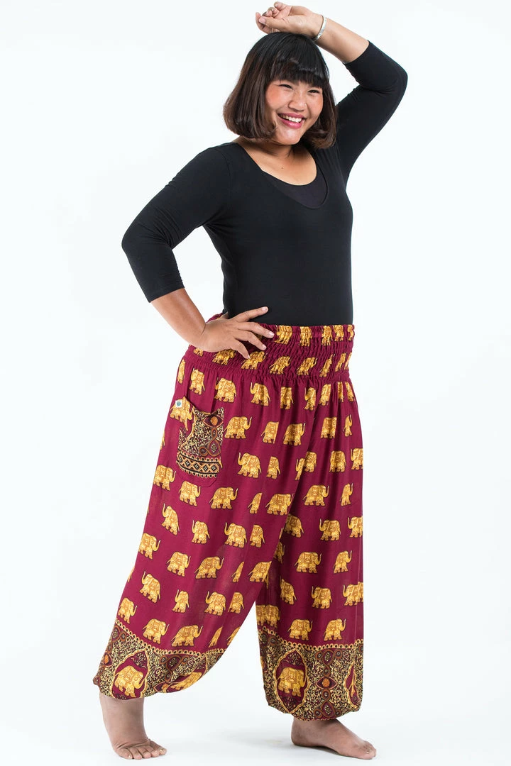 HaremPants.com Plus Size Golden Elephant Women’s Elephant Pants In Maroon