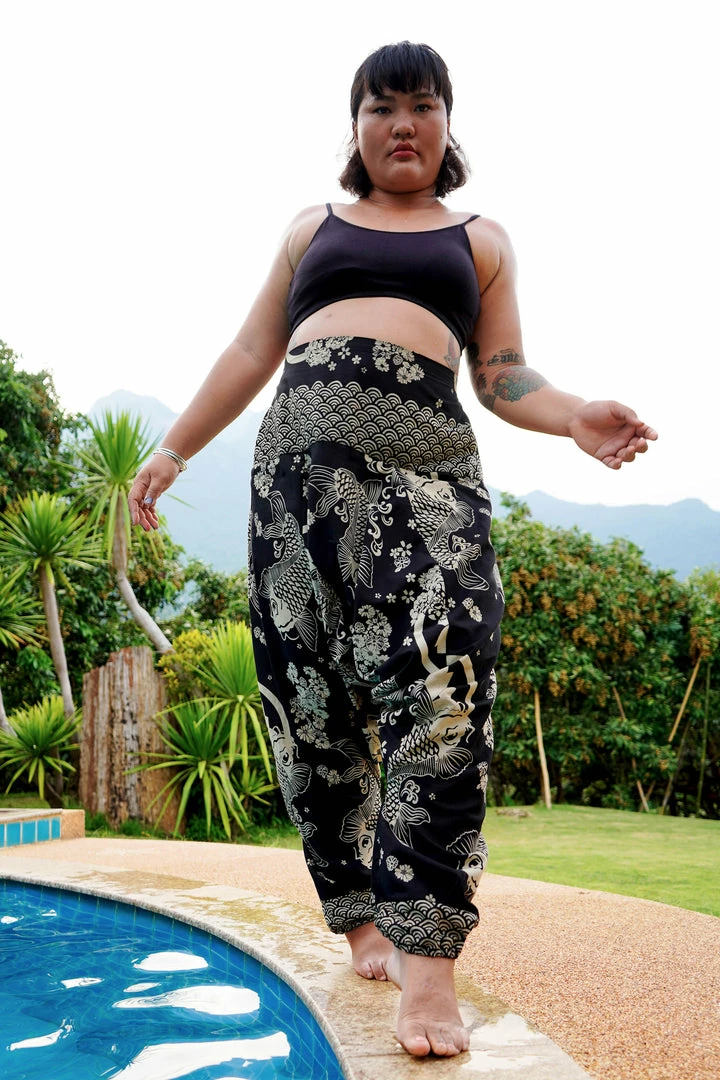 Plus Size Hill Tribe Fabric Harem Pants with elastic back waist.
