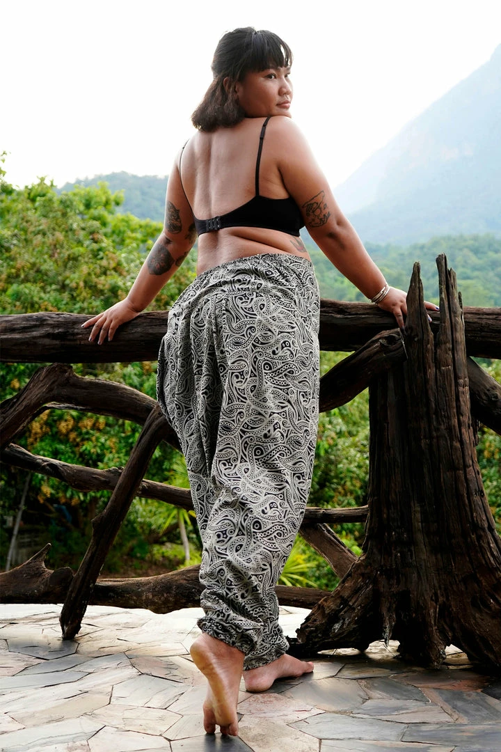 Plus Size Hill Tribe Fabric Harem Pants with elastic back waist.