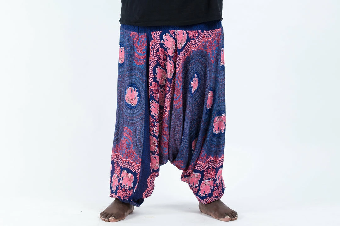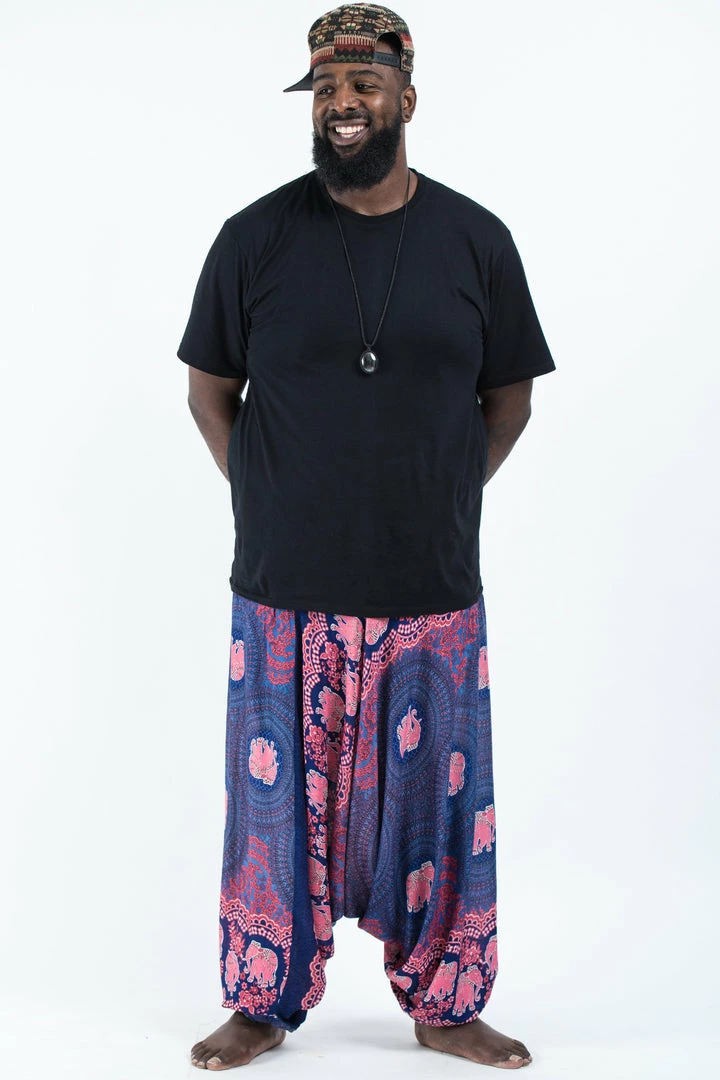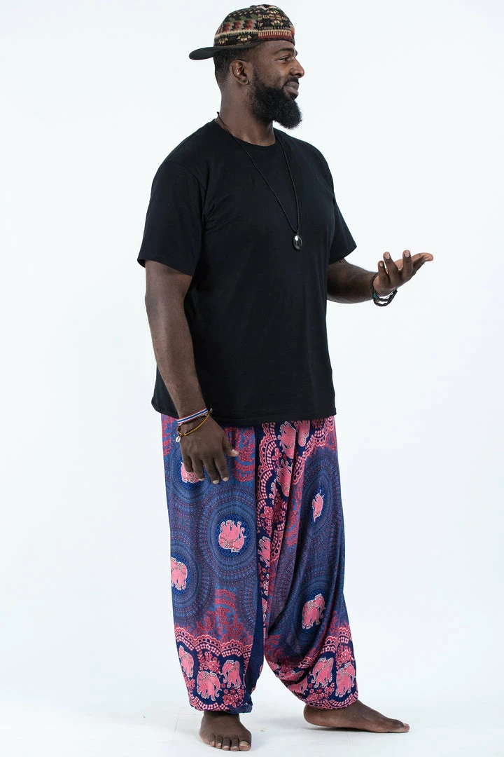 HaremPants.com Plus Size Mandala Elephant Drop Crotch Men’s Elephant Pants In Blue